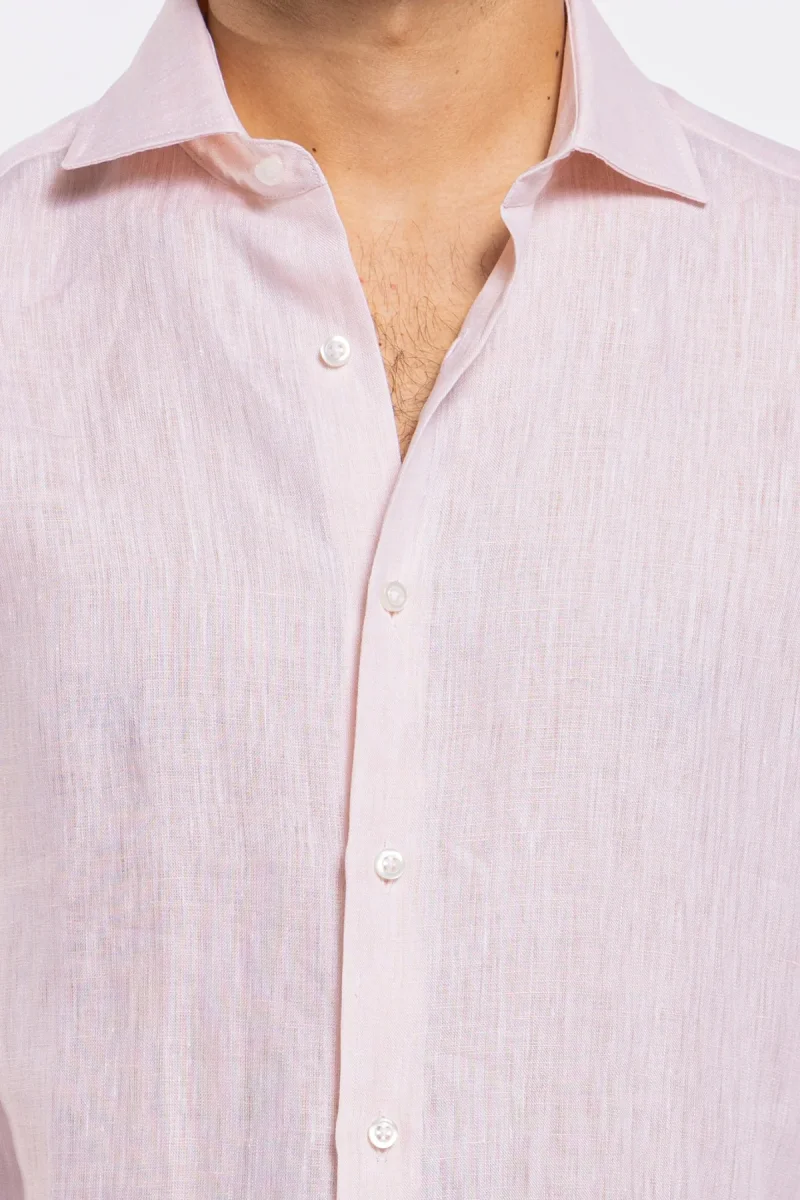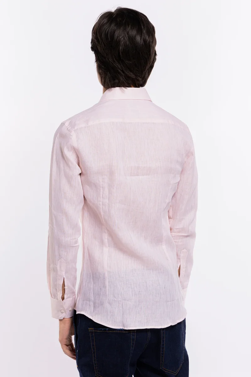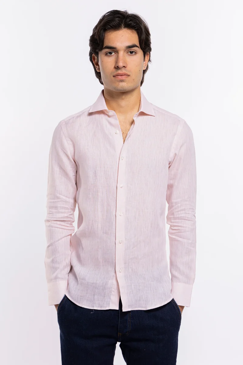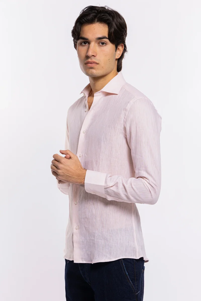 Camicia Uomo Rosa in Lino 100% made in italy collo semi francese morbido slim fit