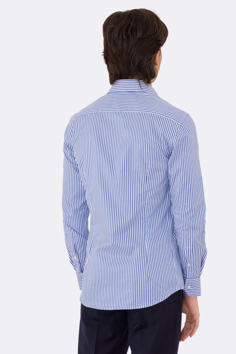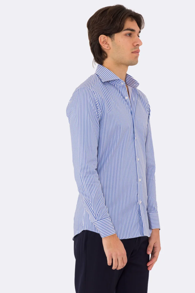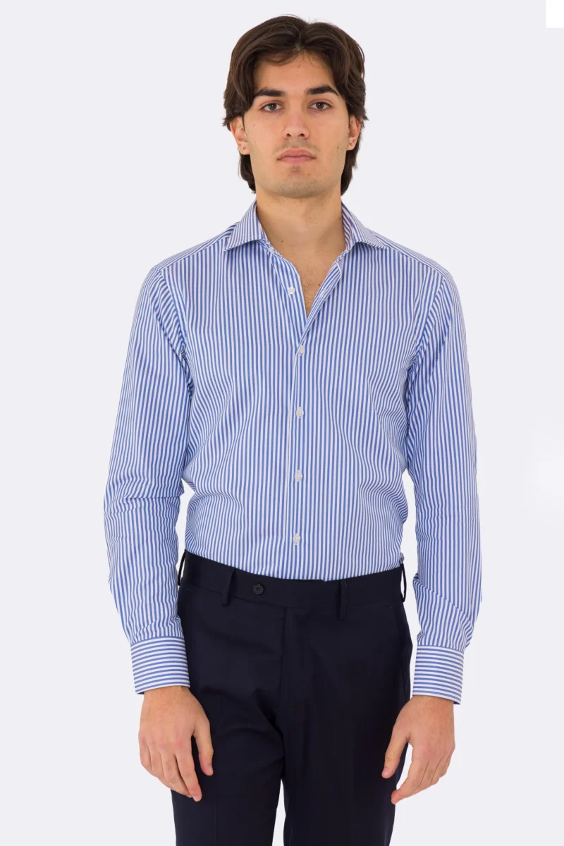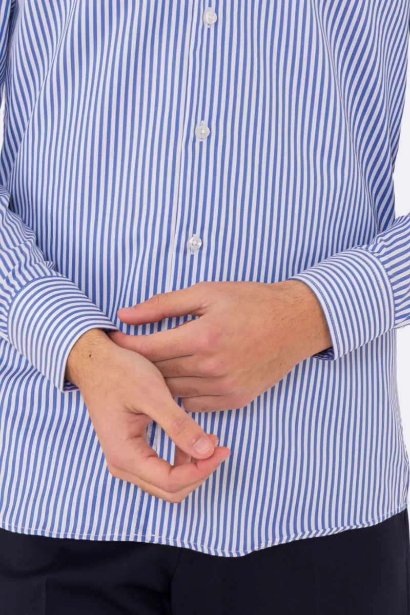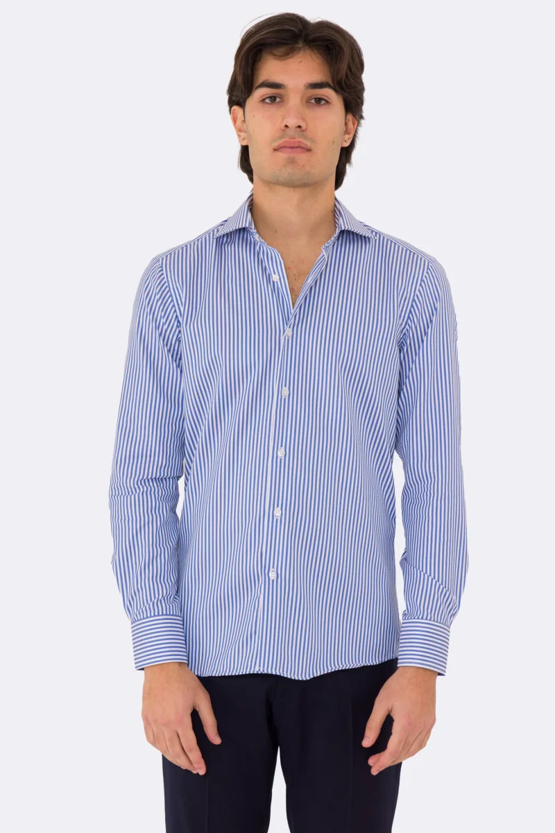 Camicia Uomo verde a righe slim Fit 100% cotone collo semi francese mileta Tessuti