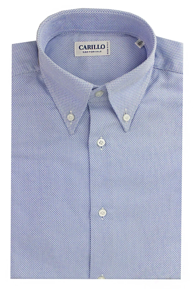 Camicia uomo sartoriale collo button down fantasia ricamo nodo celeste maniche lunghe made in italy