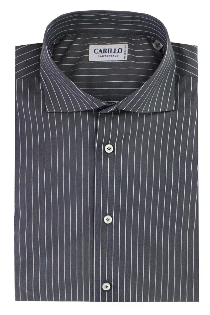 Camicia uomo sartoriale collo francese grigia fantasia riga bianca in cotone maniche lunghe made in italy