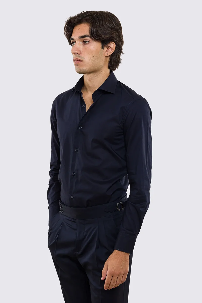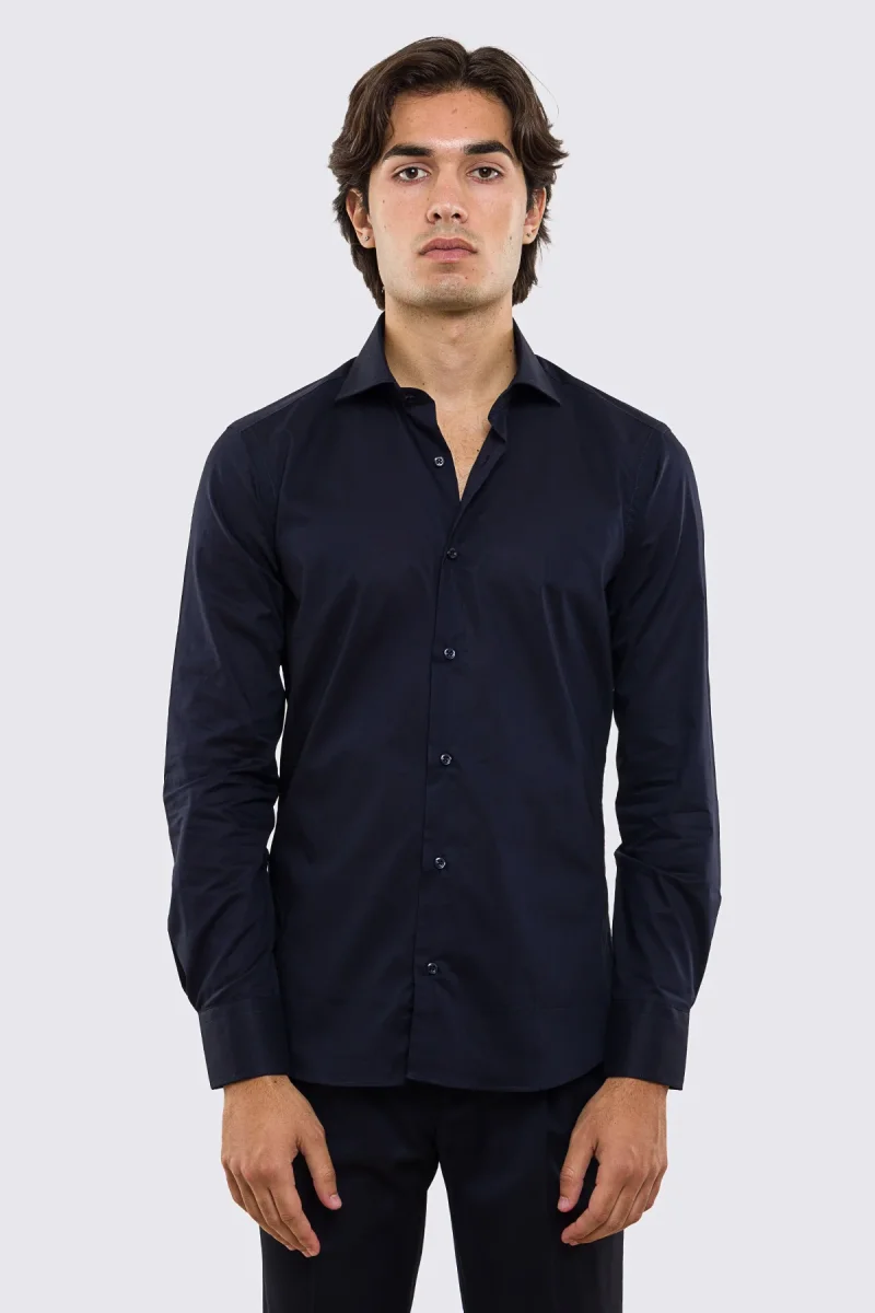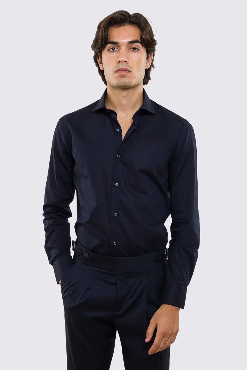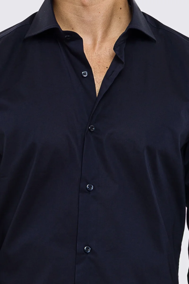 DETTAGLI : Camicia Slim fit tinta unita,con collo francese, maniche lunghe e bottoni bianchi effetto perlato.