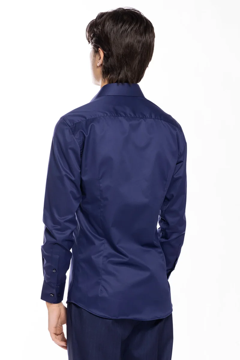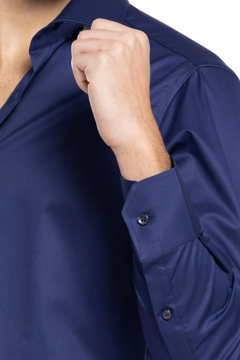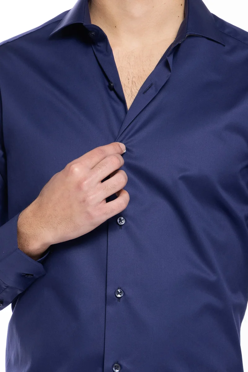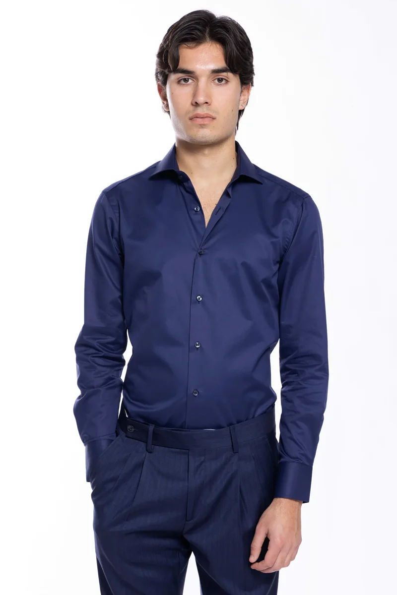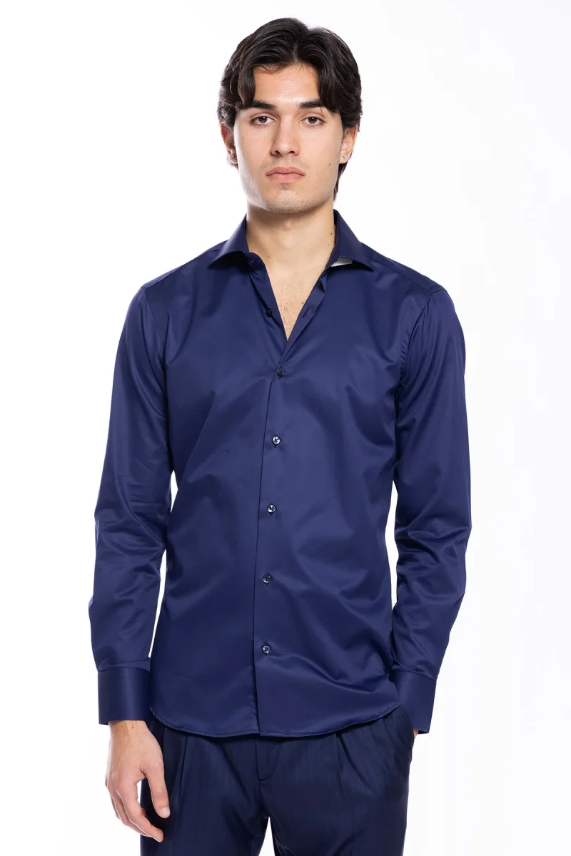 CAMICIA UOMO SLIM FIT BLU 100% COTONE TINTA UNITA COLLO SEMI FRANCESE MILETA TESSUTI