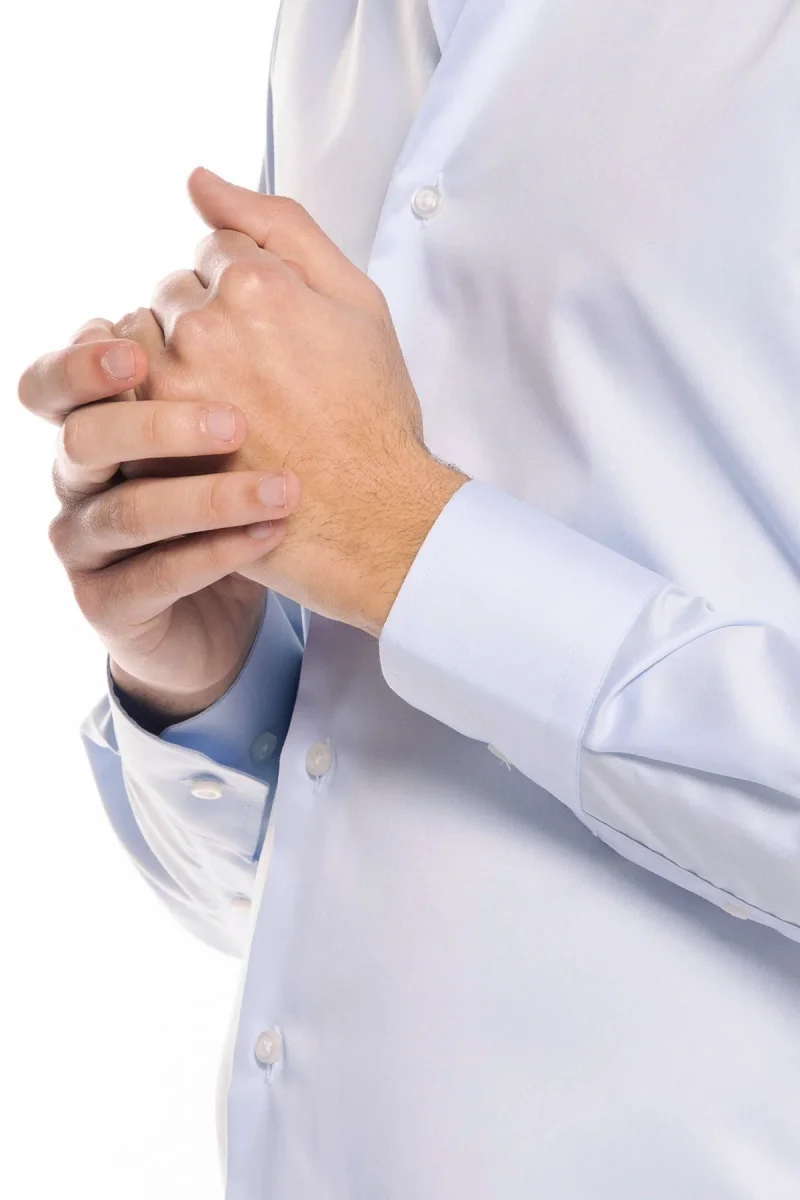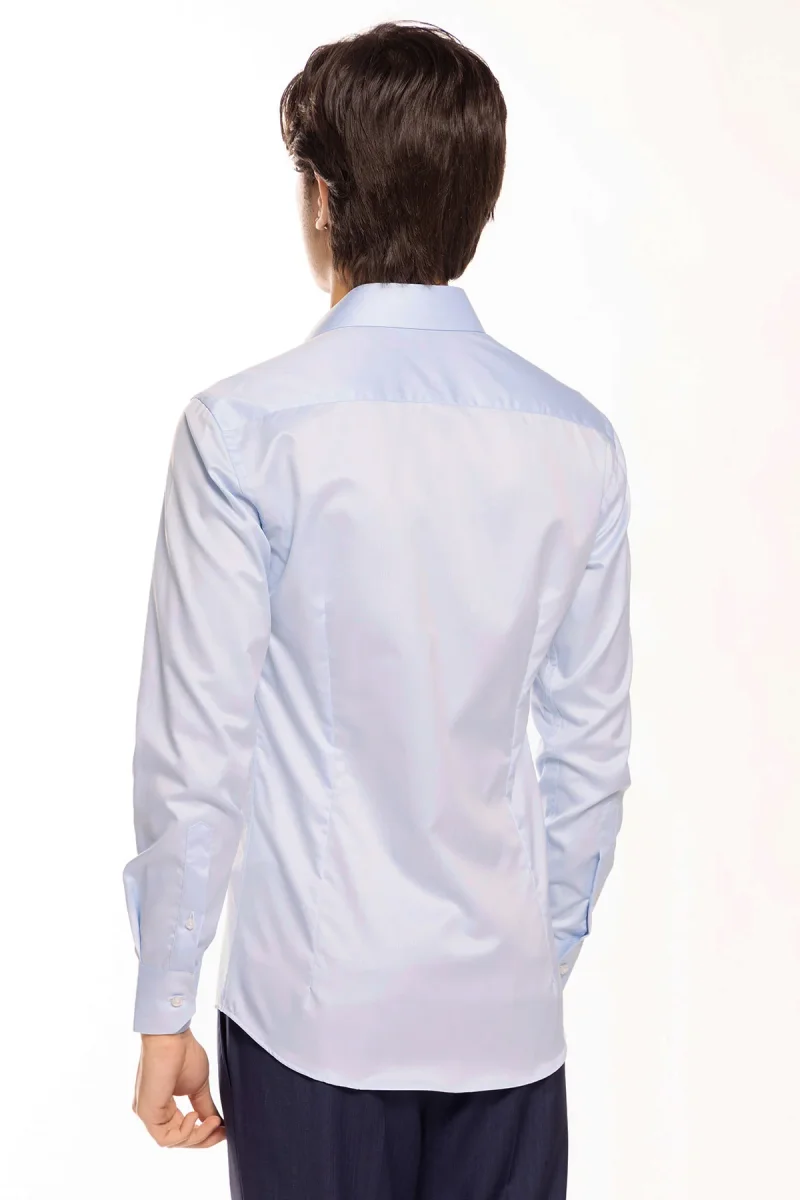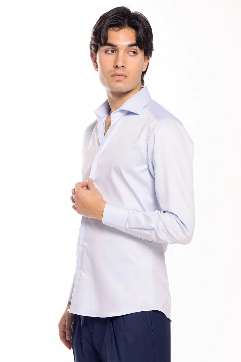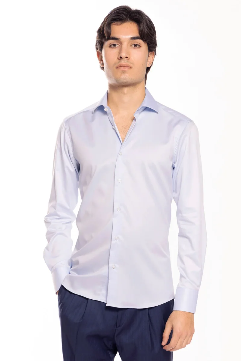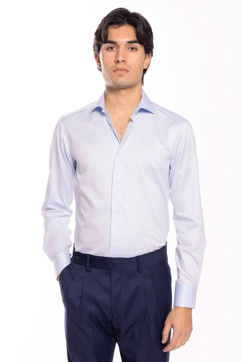 Camicia Uomo slim Fit CELESTE 100% cotone no iron Tinta unita collo semi francese mileta Tessuti