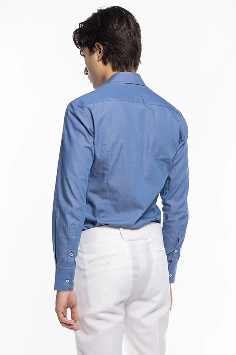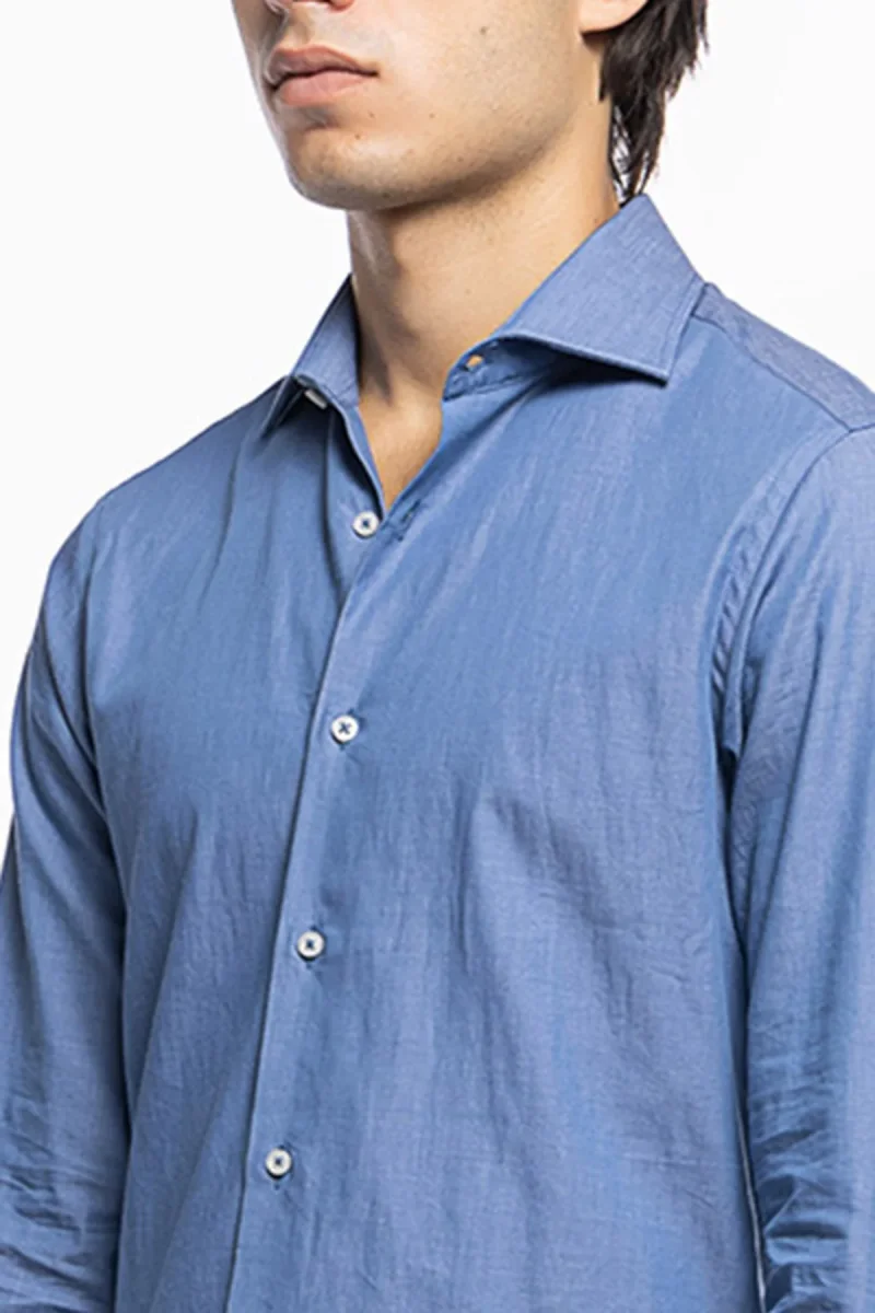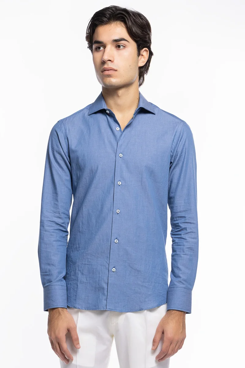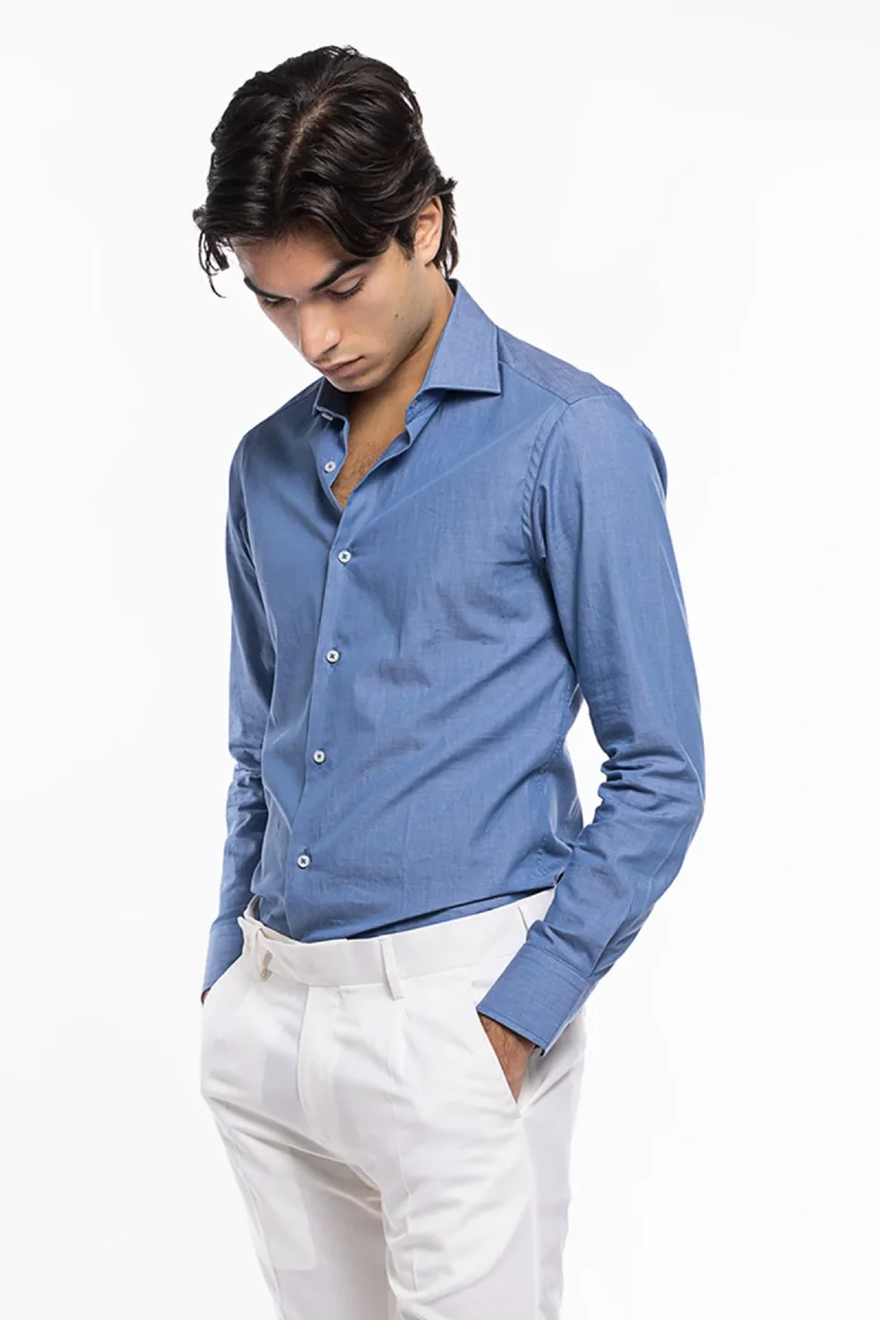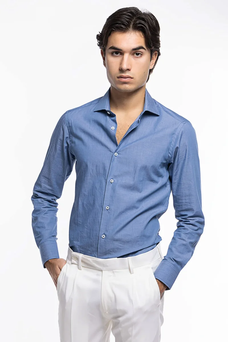 Camicia Uomo slim fit in cotone 100% denim chiaro Collo semi francese