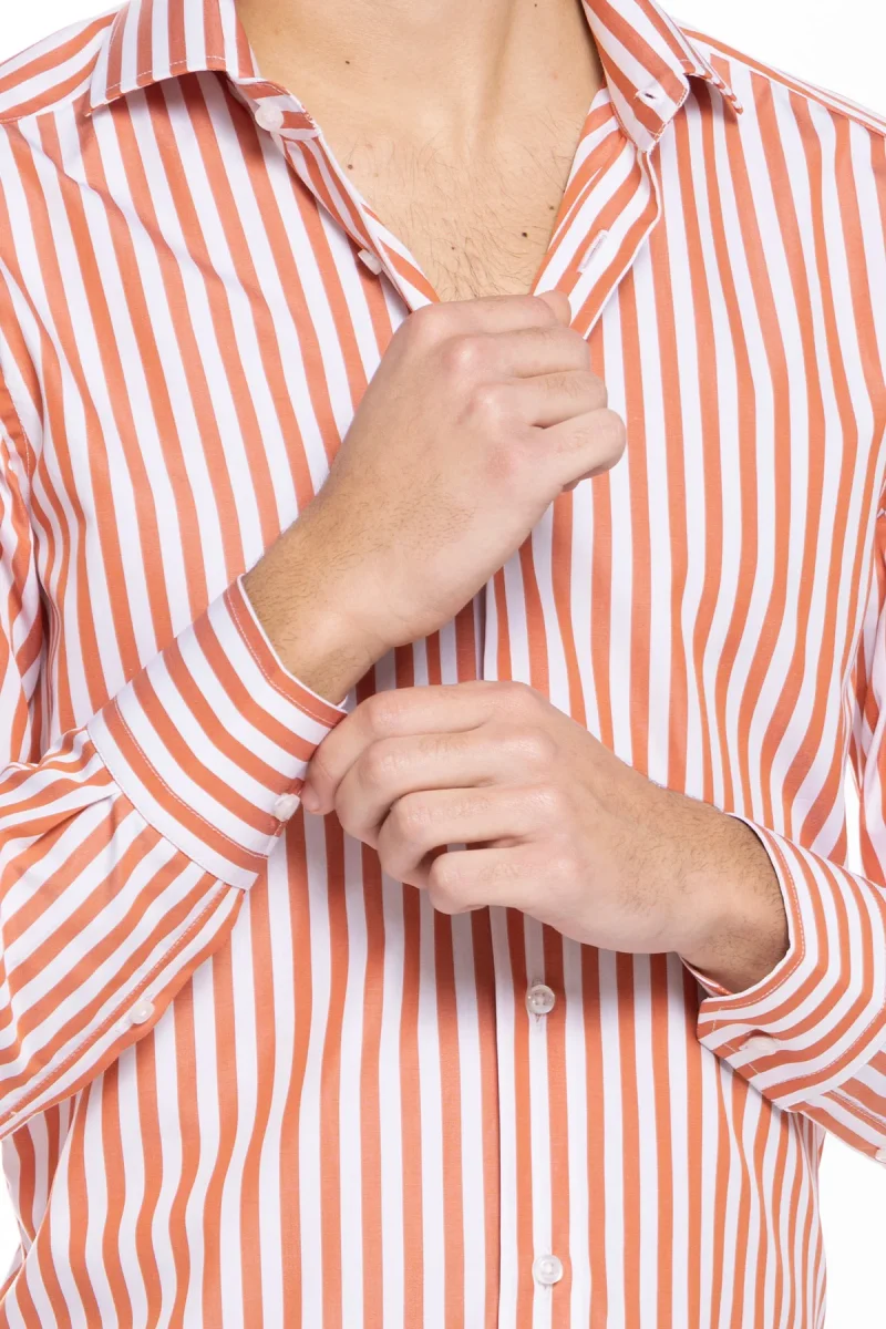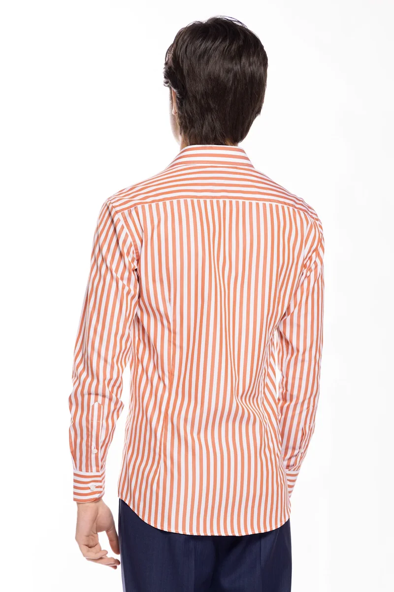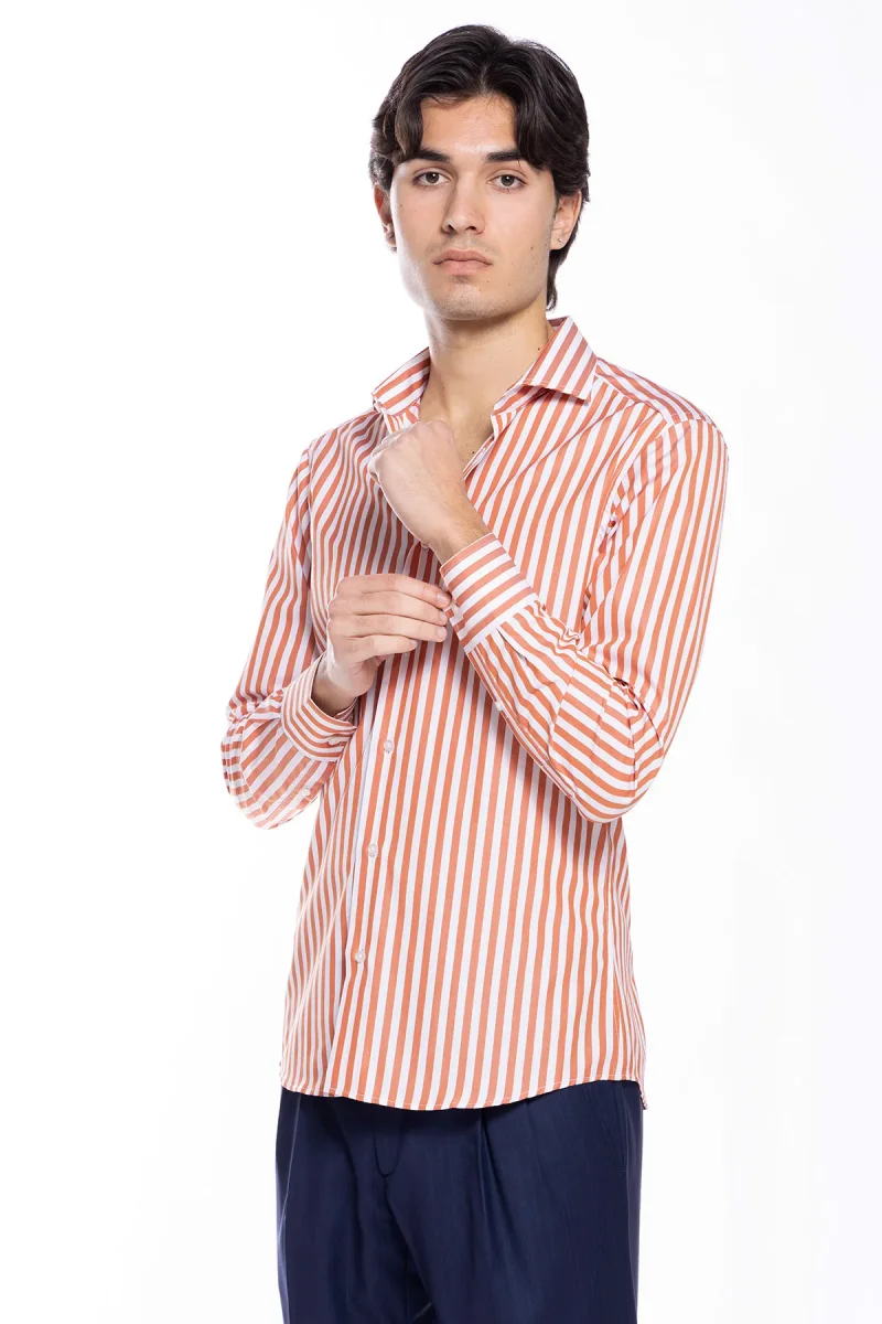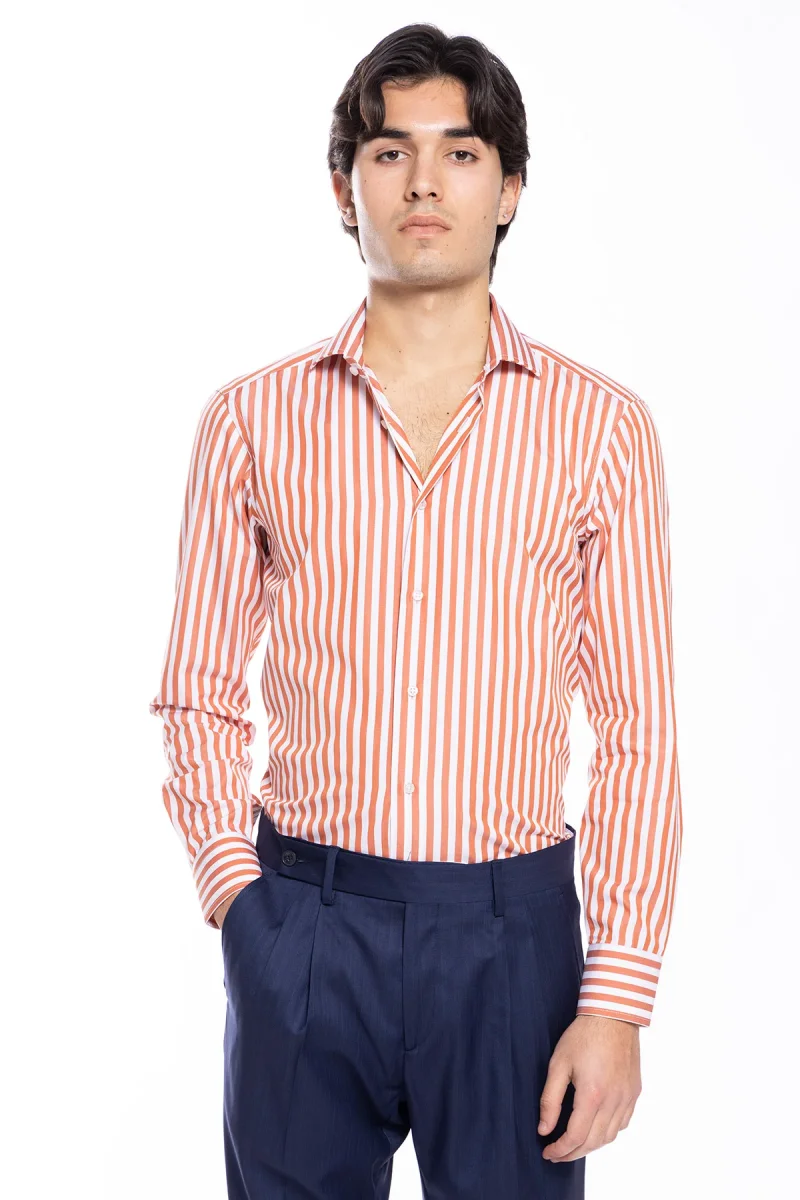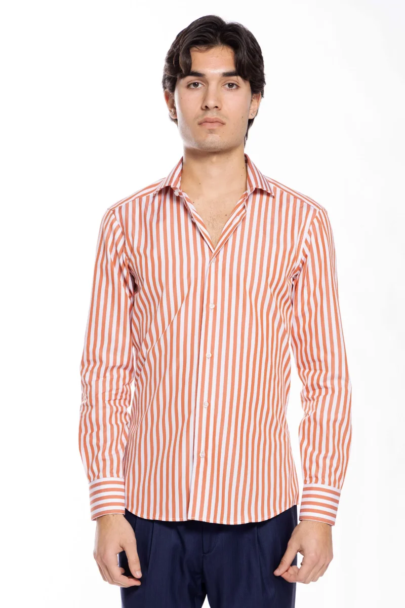 CAMICIA UOMO SLIM FIT RIGA ARANCIO LARGA 100% COTONE COLLO SEMI FRANCESE MILETA TESSUTI