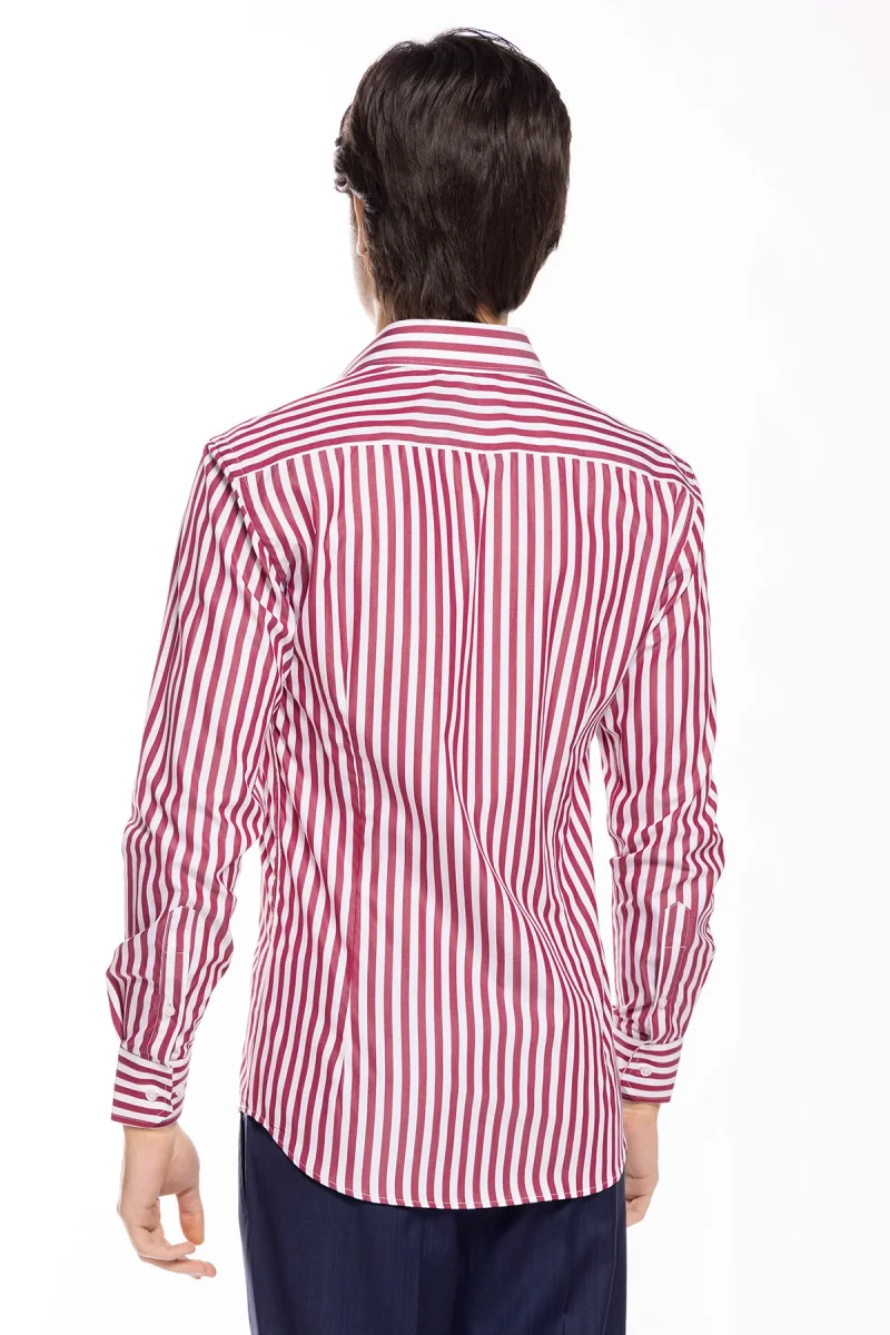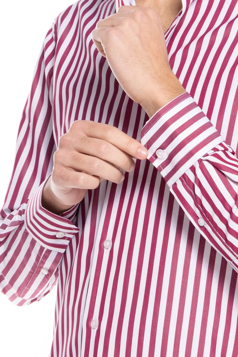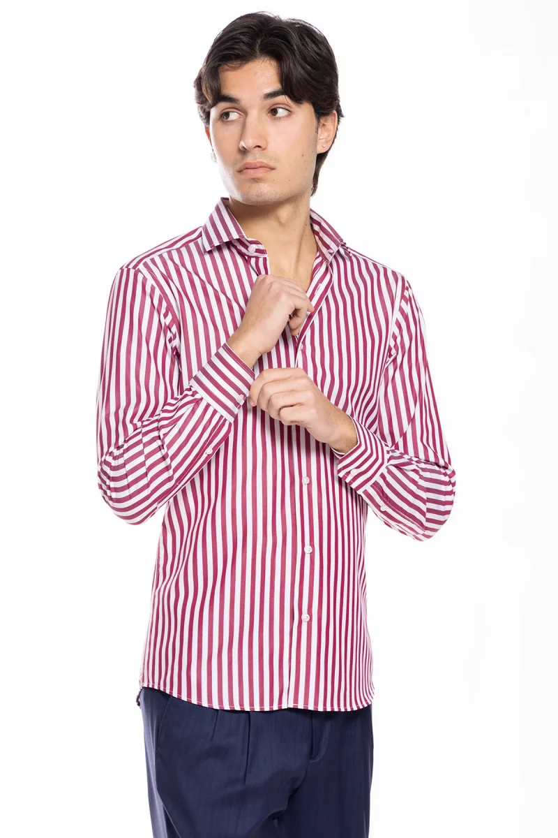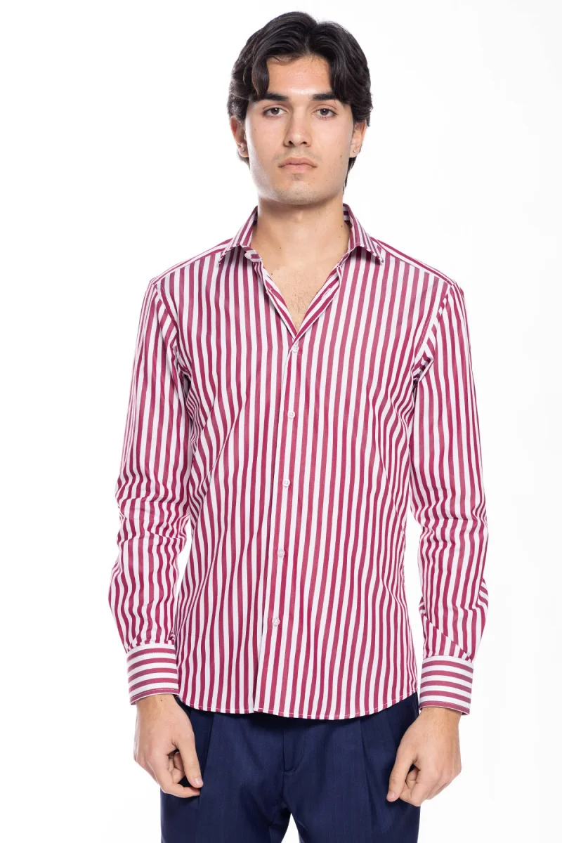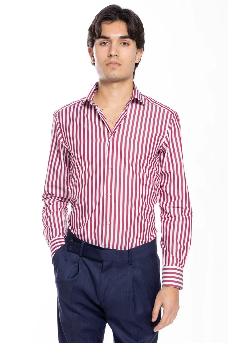 CAMICIA UOMO SLIM FIT RIGA BORDEAUX LARGA 100% COTONE COLLO SEMI FRANCESE MILETA TESSUTI