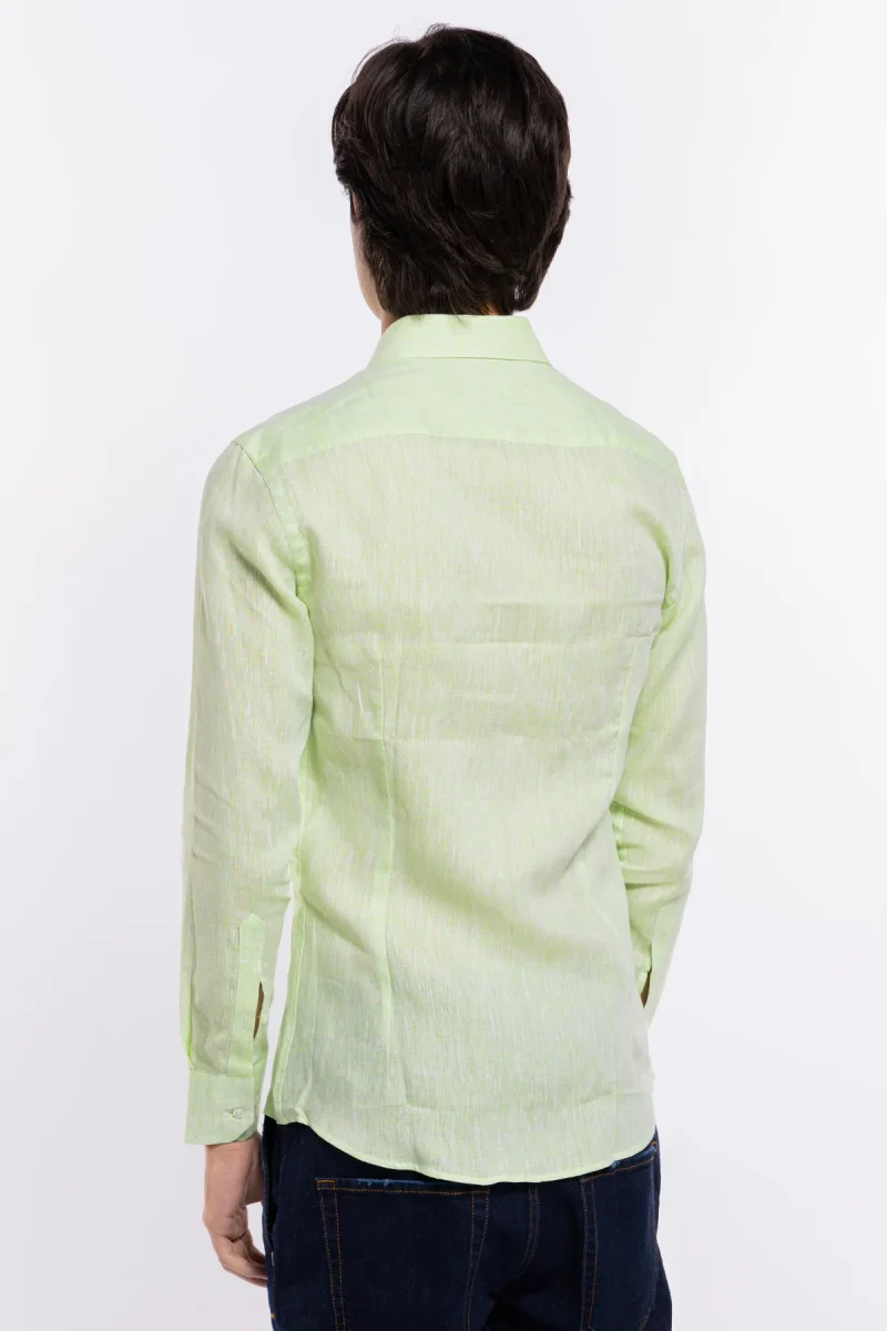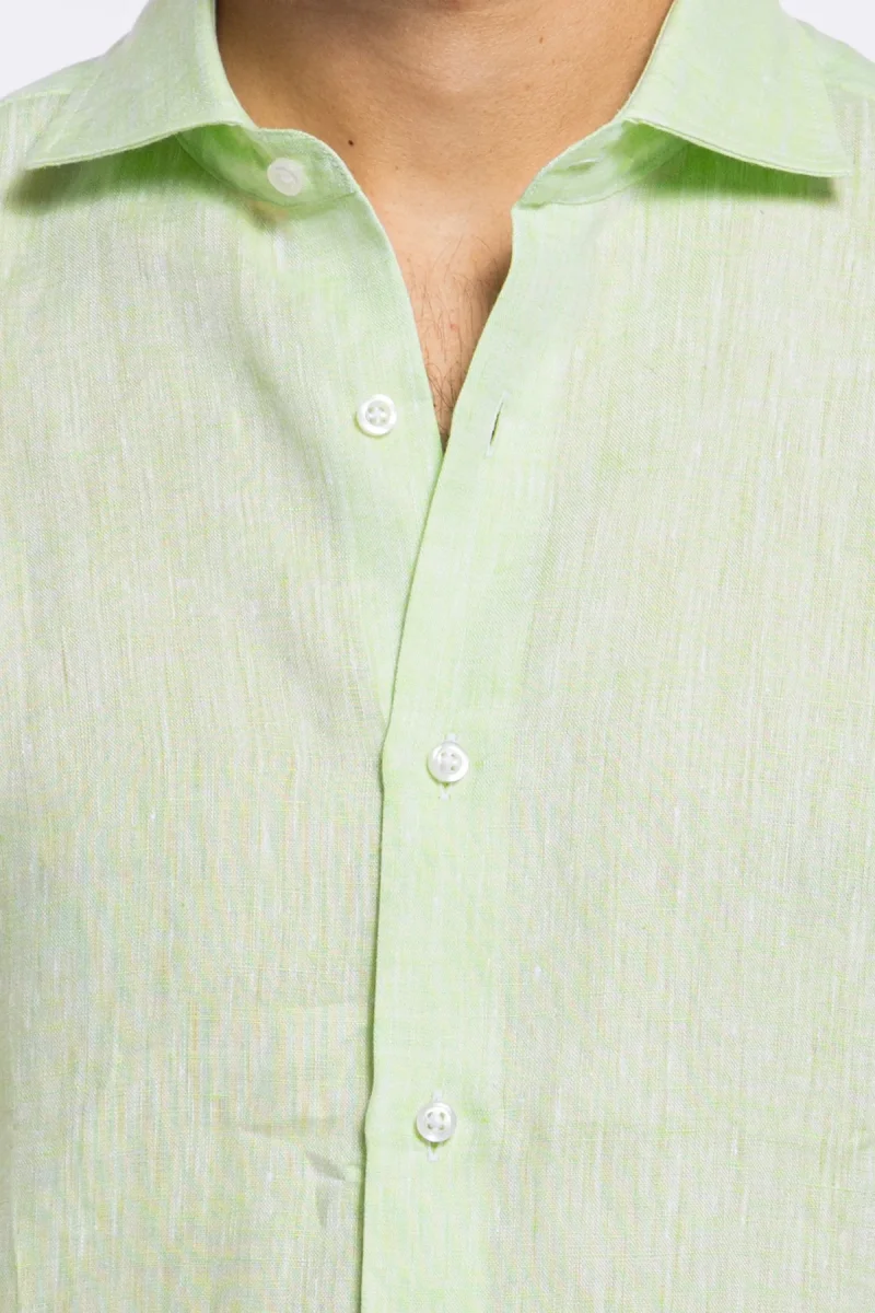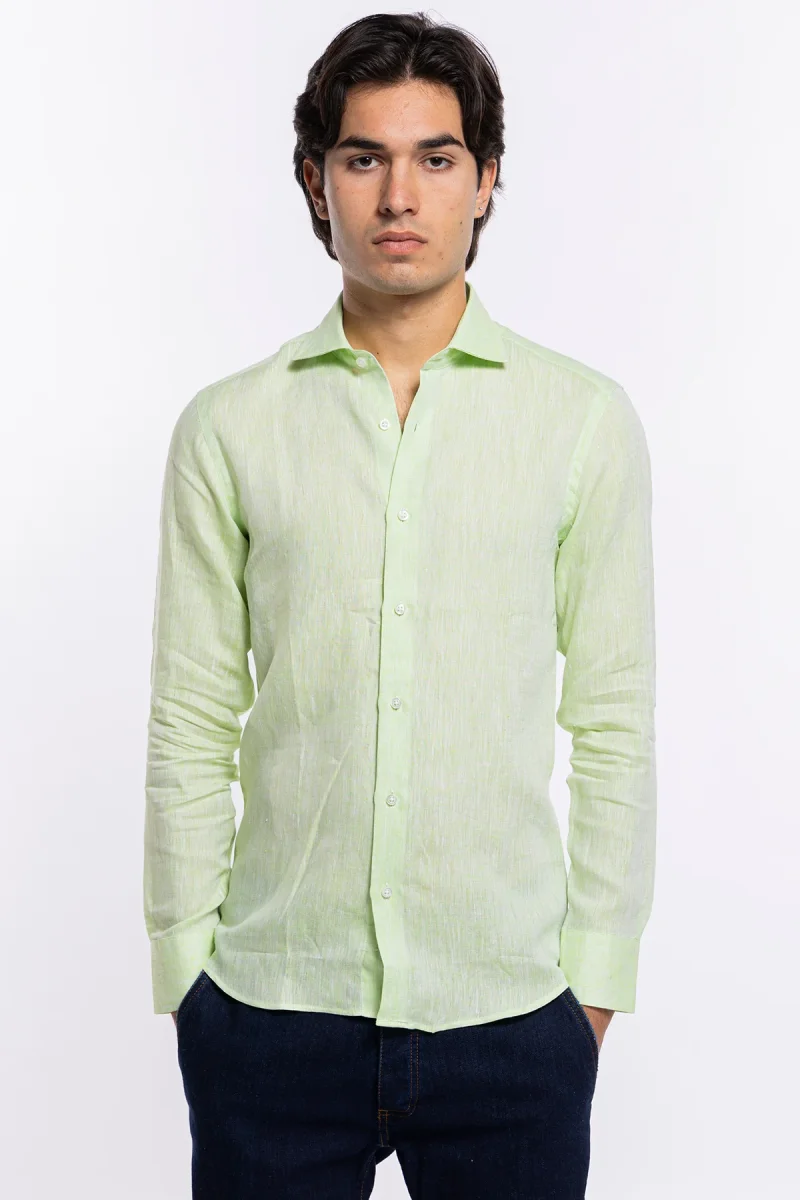 Camicia Uomo verde mela in Lino 100% made in italy collo semi francese morbido slim fit effetto melange