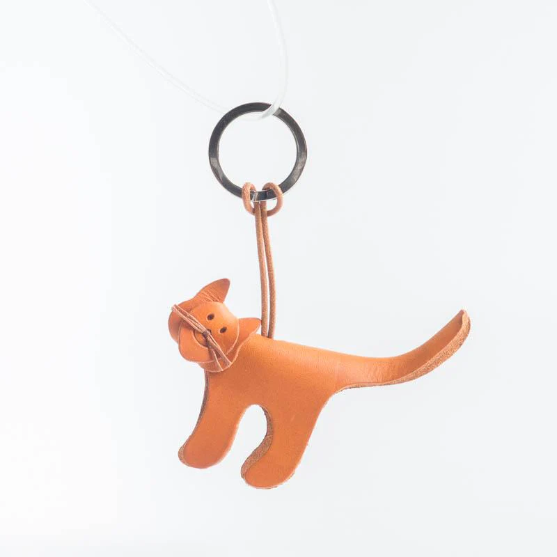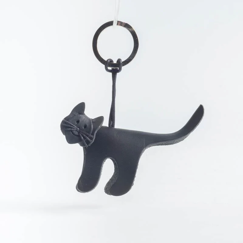 Portachiavi realizzato a mano in vacchetta di colore nero e cuoio. Anello in acciaio.