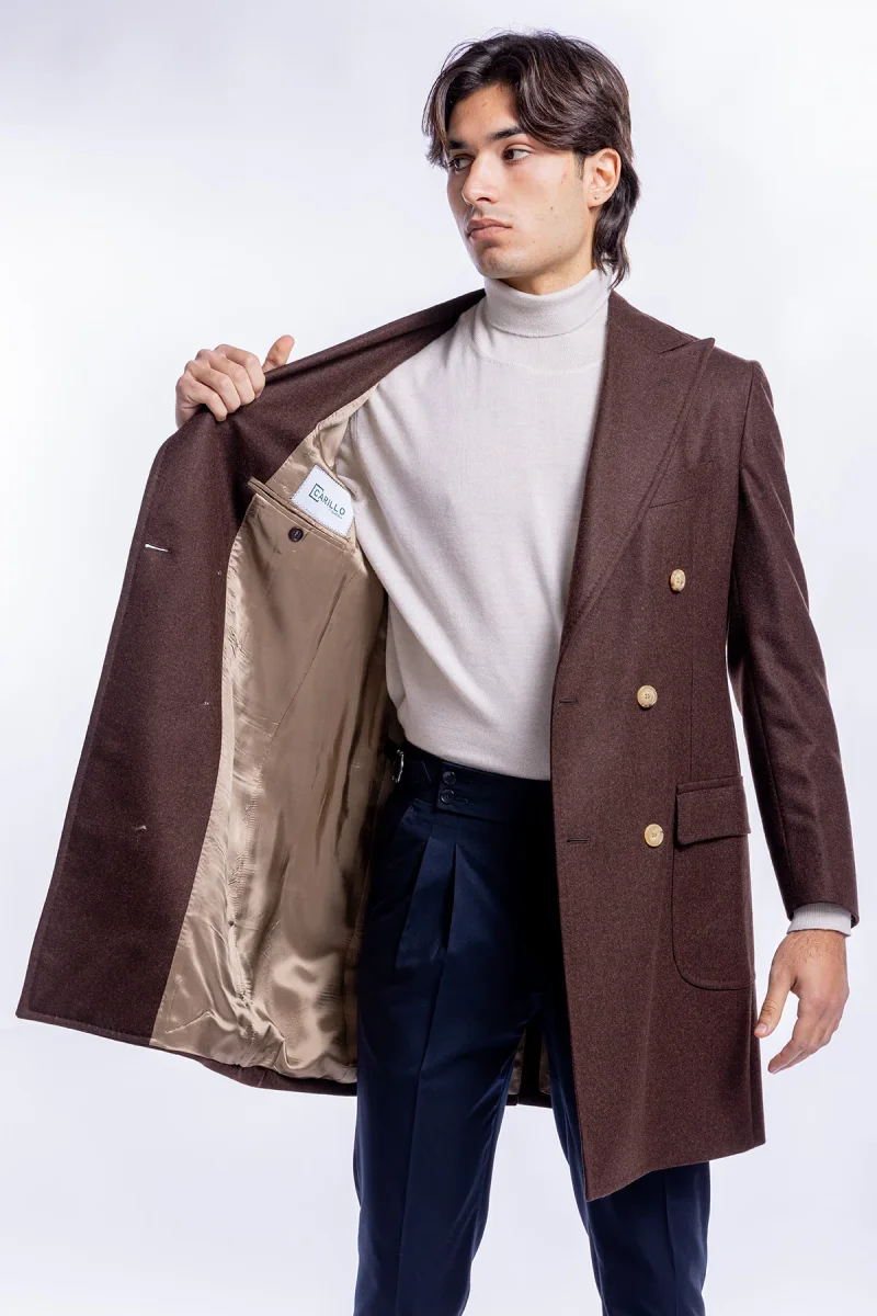 Il Cappotto uomo marrone doppiopetto in lana Vitale Barberis Canonico rever largo della linea SARTORIA CARILLO e ormai per i nostri clienti sinonimo di garanzia e qualita. Questo modello, viene scelto da una tipologia di persone che amano vestire bene e nello stesso tempo scelgono la comodita. Infatti grazie alle caratteristiche del tessuto morbido permette a chi lo indossa di scegliere la sua misura perfetta e non preoccuparsi delle limitazioni dei movimenti nonostante la sua vestibilita slim.