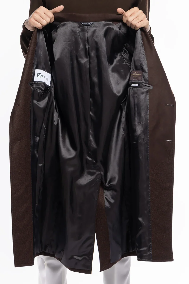 Il Cappotto uomo marrone monopetto in lana Vitale Barberis Canonico rever largo della linea SARTORIA CARILLO e ormai per i nostri clienti sinonimo di garanzia e qualita. Questo modello, viene scelto da una tipologia di persone che amano vestire bene e nello stesso tempo scelgono la comodita. Infatti grazie alle caratteristiche del tessuto morbido permette a chi lo indossa di scegliere la sua misura perfetta e non preoccuparsi delle limitazioni dei movimenti nonostante la sua vestibilita slim.