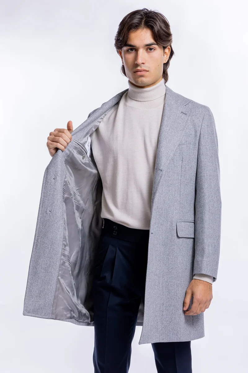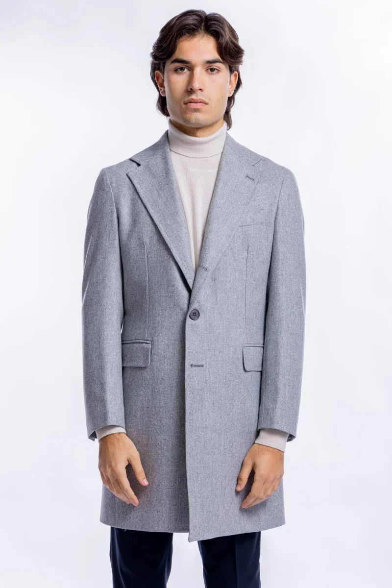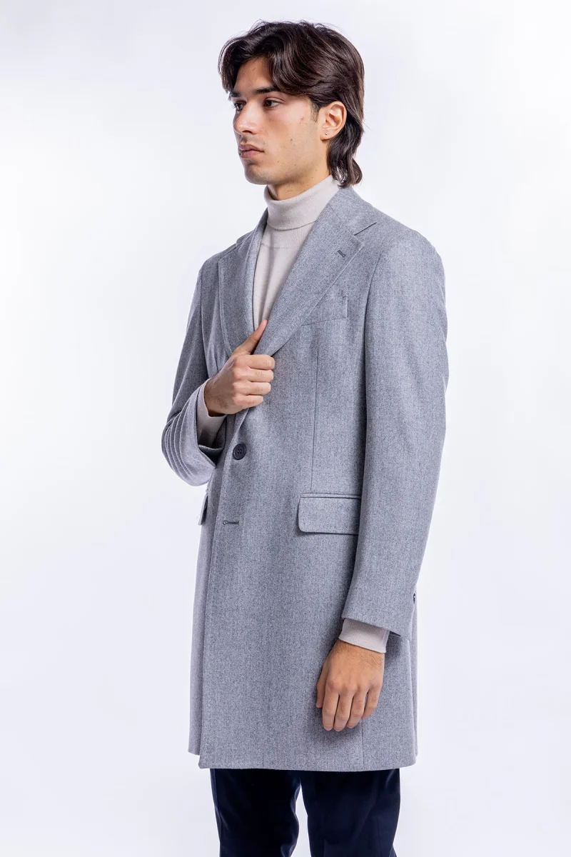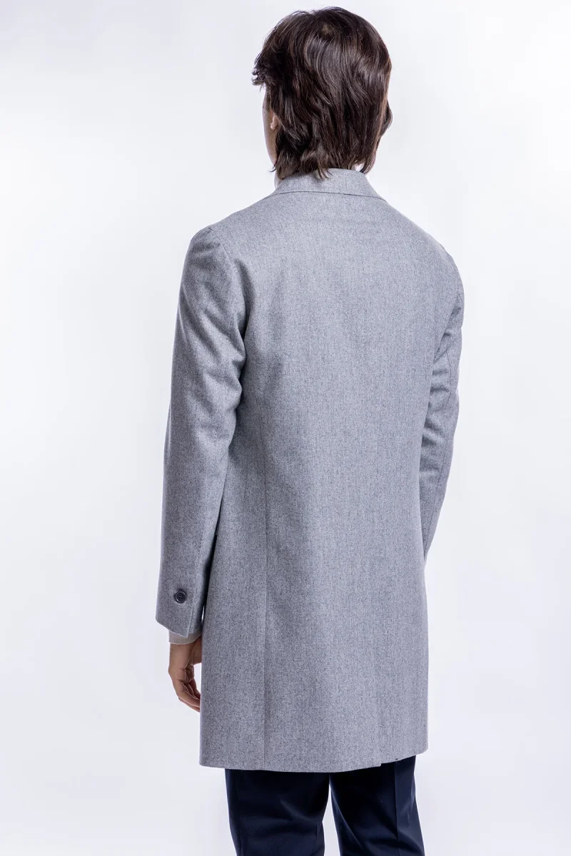 Cappotto uomo Monopetto grigio chiaro in pura lana al 100% Vitale Barberis Canonico rever largo 11cm con martingala sul retro