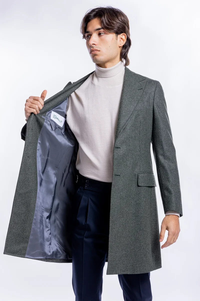 Il Cappotto uomo verde monopetto in lana Vitale Barberis Canonico rever largo della linea SARTORIA CARILLO e ormai per i nostri clienti sinonimo di garanzia e qualita. Questo modello, viene scelto da una tipologia di persone che amano vestire bene e nello stesso tempo scelgono la comodita. Infatti grazie alle caratteristiche del tessuto morbido permette a chi lo indossa di scegliere la sua misura perfetta e non preoccuparsi delle limitazioni dei movimenti nonostante la sua vestibilita slim.