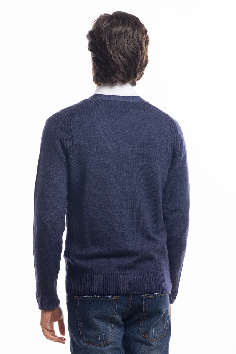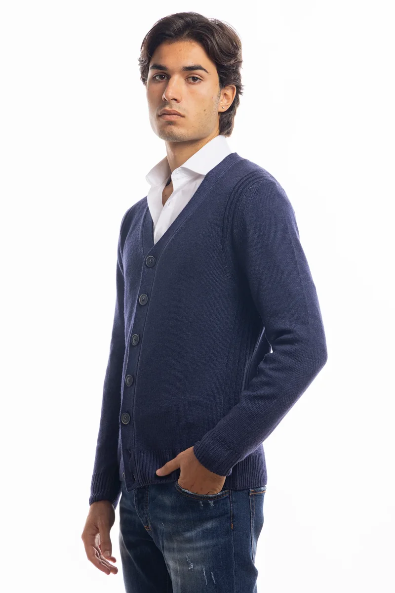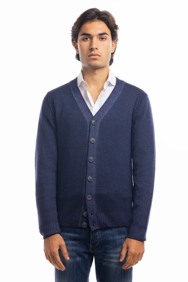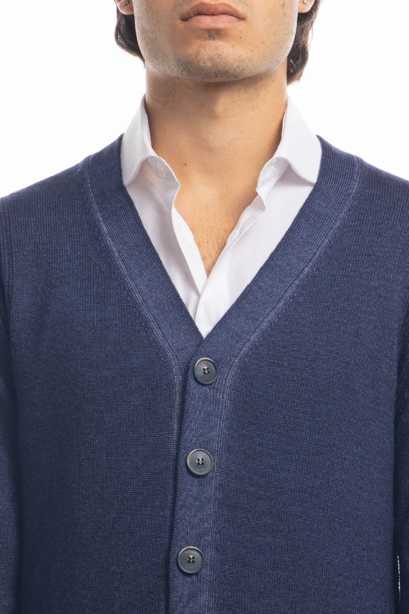 Cardigan da uomo blu lana merinos 100% effetto stone wash maniche lunghe