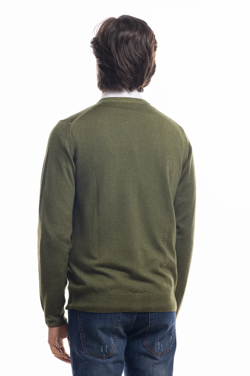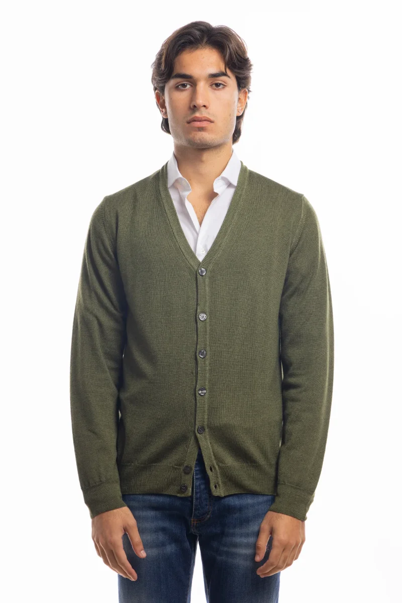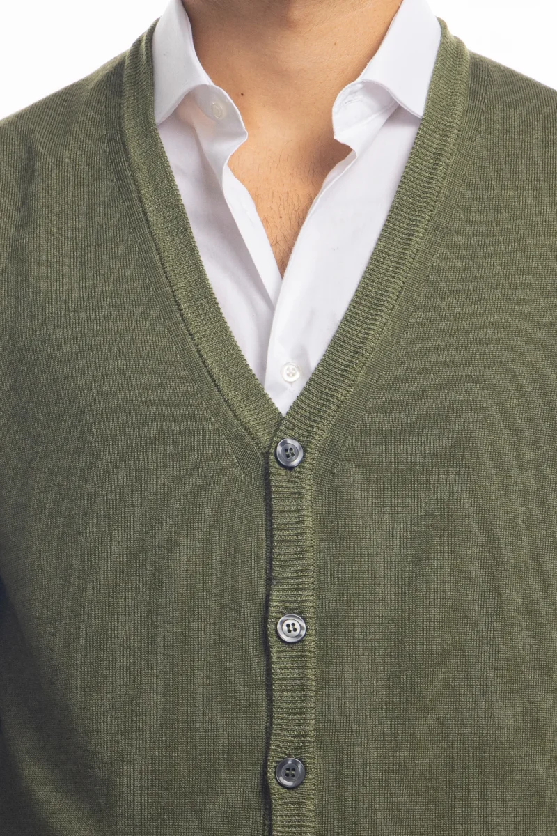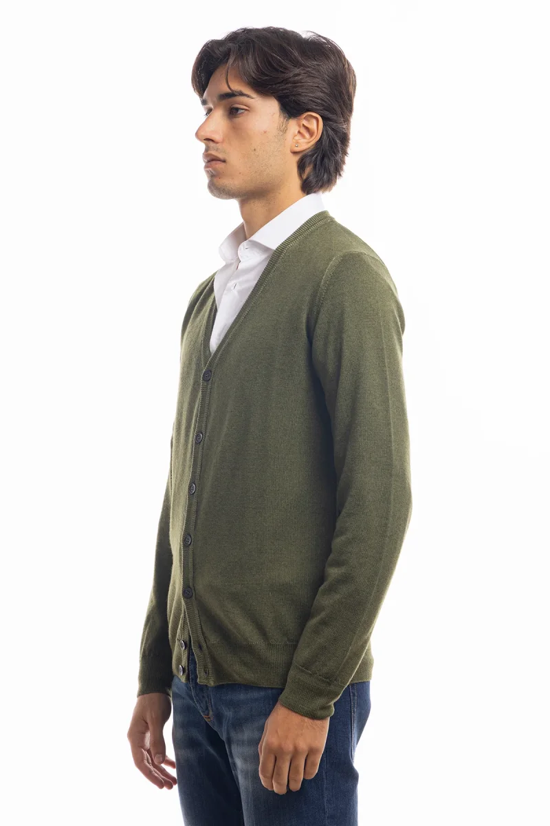 CARDIGAN DA UOMO VERDE MILITARE LANA MERINOS 100% EFFETTO STONE WASH MANICHE LUNGHE