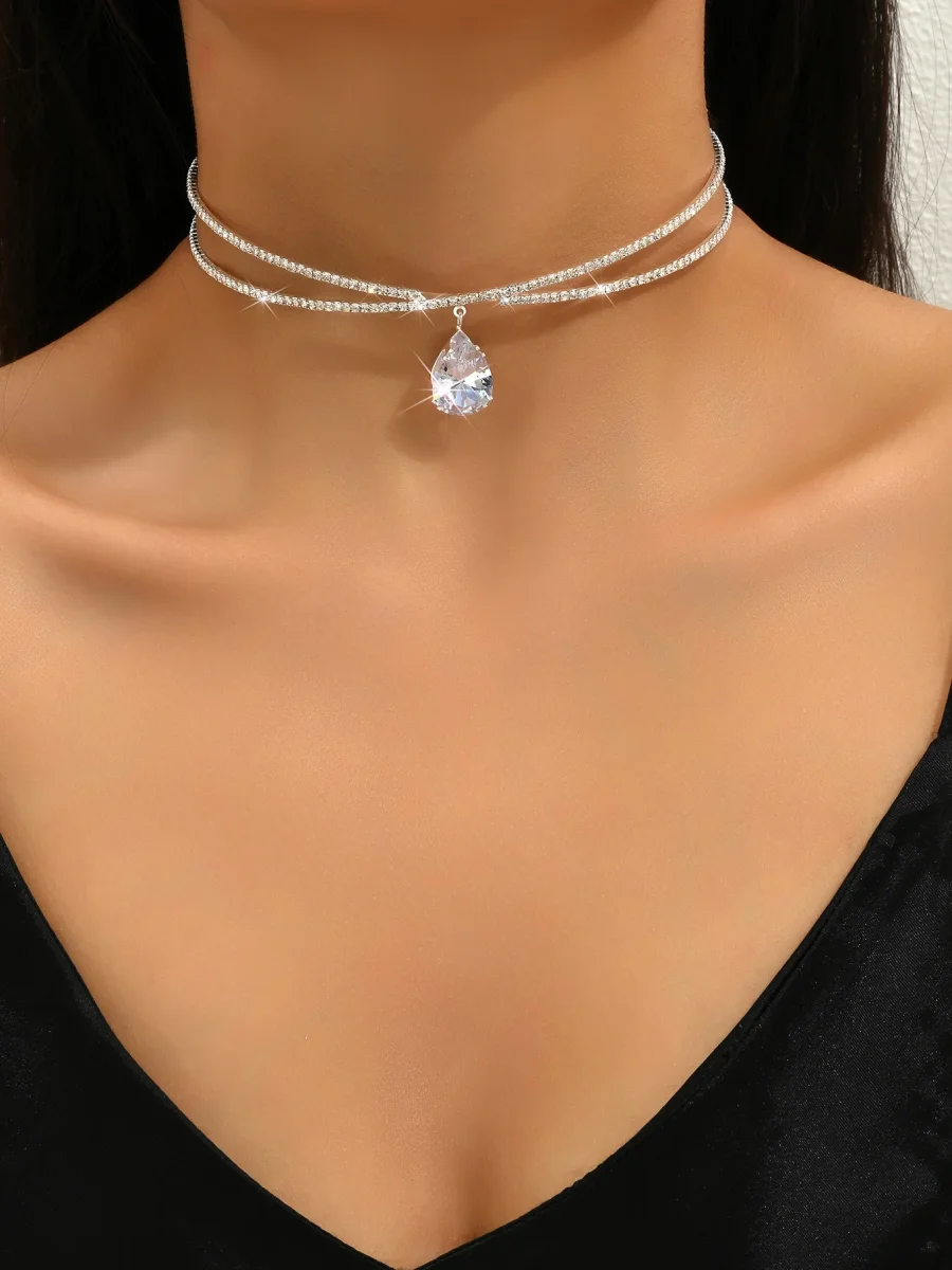 Choker zirconia cubica a goccia d’acqua ciondolo stratificato