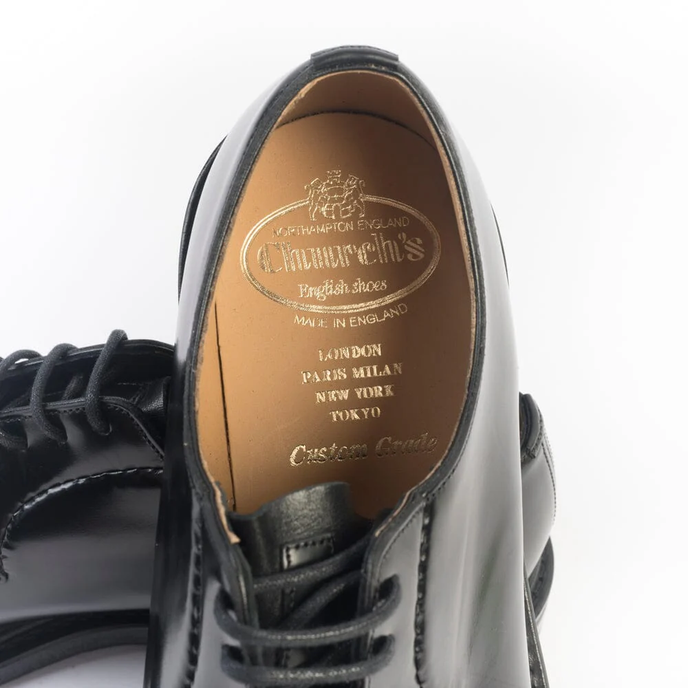 La Shannon è un modello iconico della casa madre inglese Church’s. Derby in pelle lucida di colore nero, lavorazione goodyear, fondo in gomma.