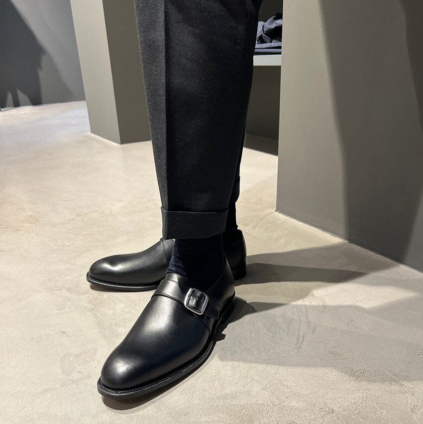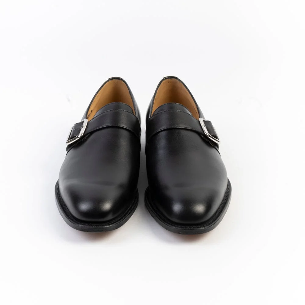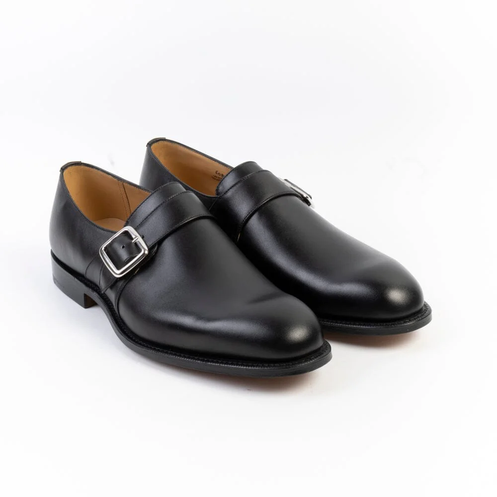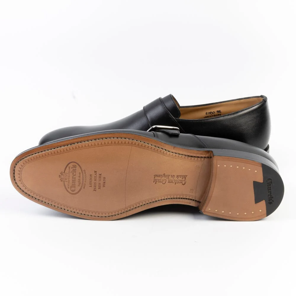 La calzatura Westbury con fibbia di Church’s è realizzata in pelle di vitello di colore nero. Forma affusolata. La costruzione della scarpa è Goodyear. Chiusura con fibbia regolabile. Suola in cuoio.