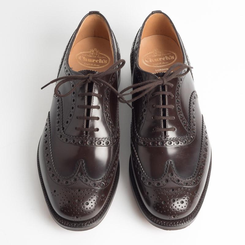 Burwood di Church’s è una francesina con lavorazione a coda di rondine di colore marrone scuro. La costruzione della scarpa è goodyear, la suola è tripla ed è in cuoio.