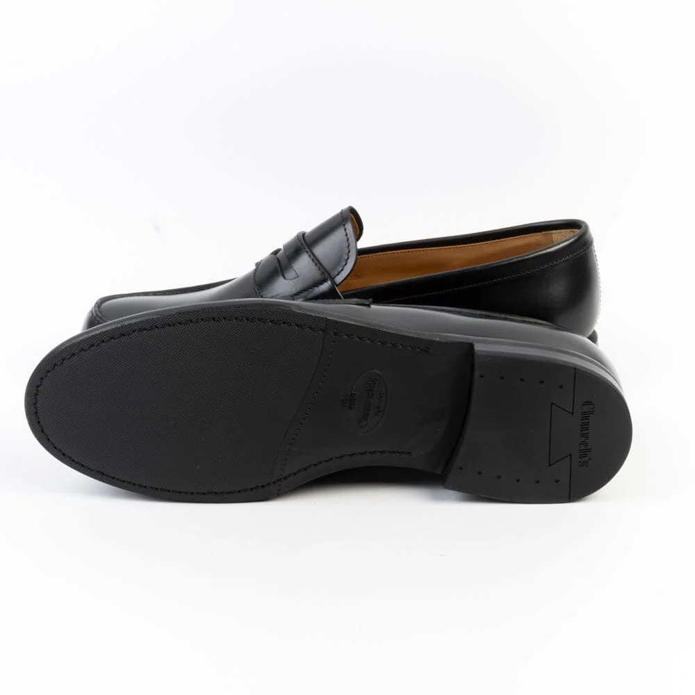 Mocassino Gateshead di Church’s realizzato in pelle di vitello spazzolata di colore nero. La costruzione della scarpa è Goodyear, interno foderato e sottopiede in pelle, la suola è in gomma.
