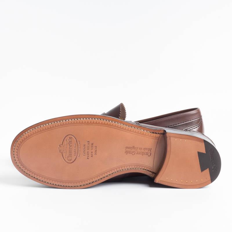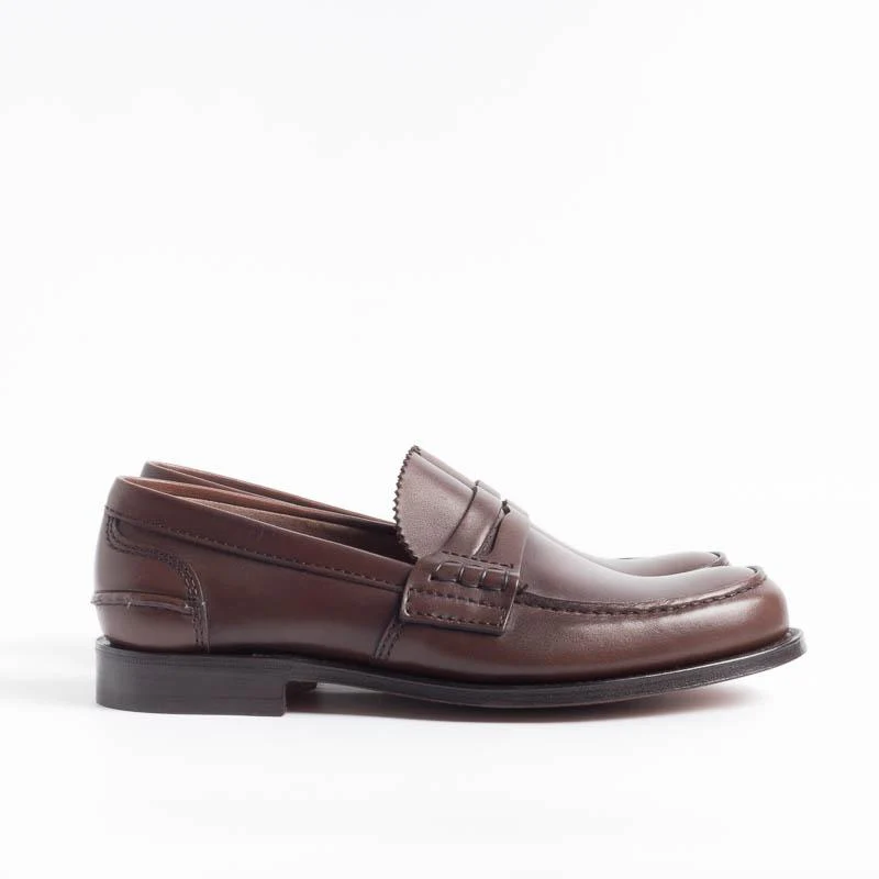 Mocassino Pembrey di Church’s realizzato in pelle di vitello di colore cocnac. La costruzione della scarpa è Goodyear, interno sfoderato e sottopiede in pelle, la suola è tripla ed è in cuoio.