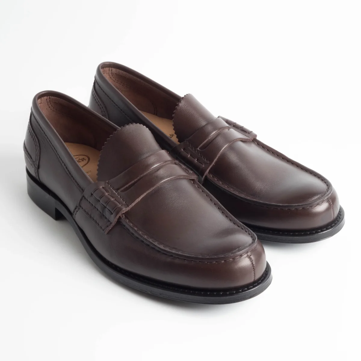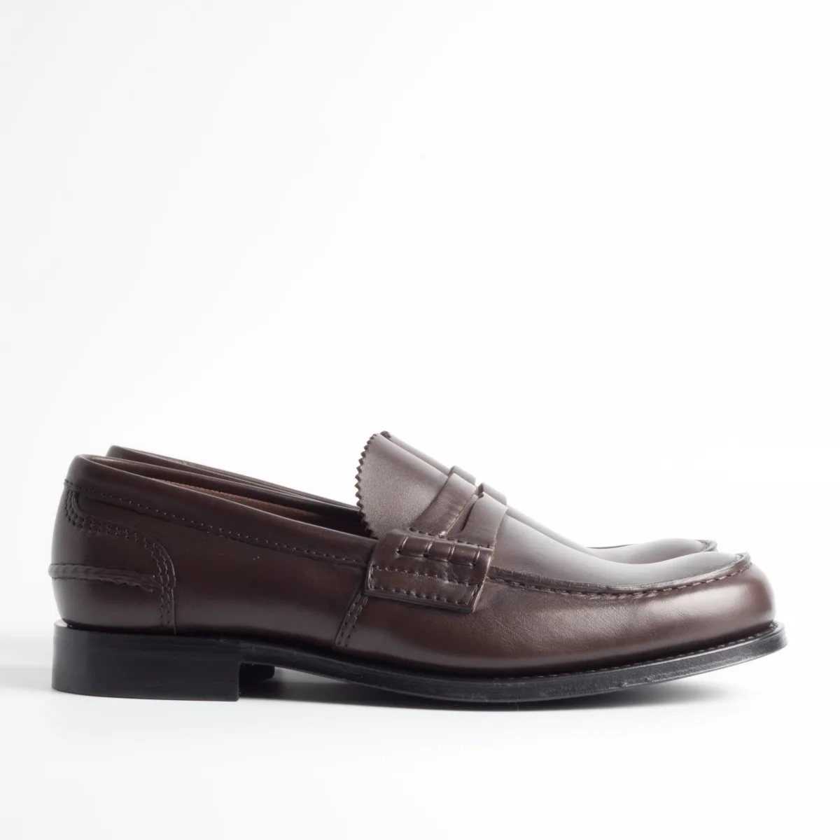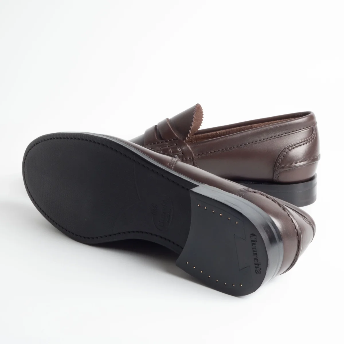 Mocassino classico Pembrey di Church’s realizzato in pelle di vitello di colore marrone. La costruzione della scarpa è Goodyear, interno e sottopiede in pelle, la suola è tripla ed è in gomma.