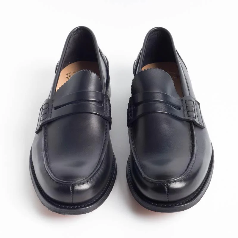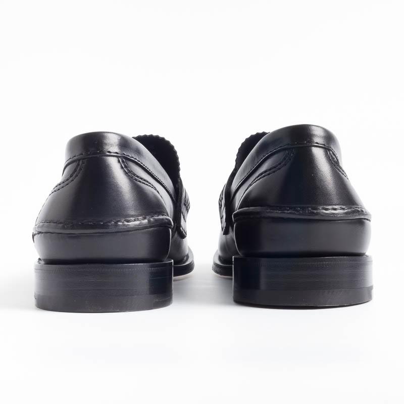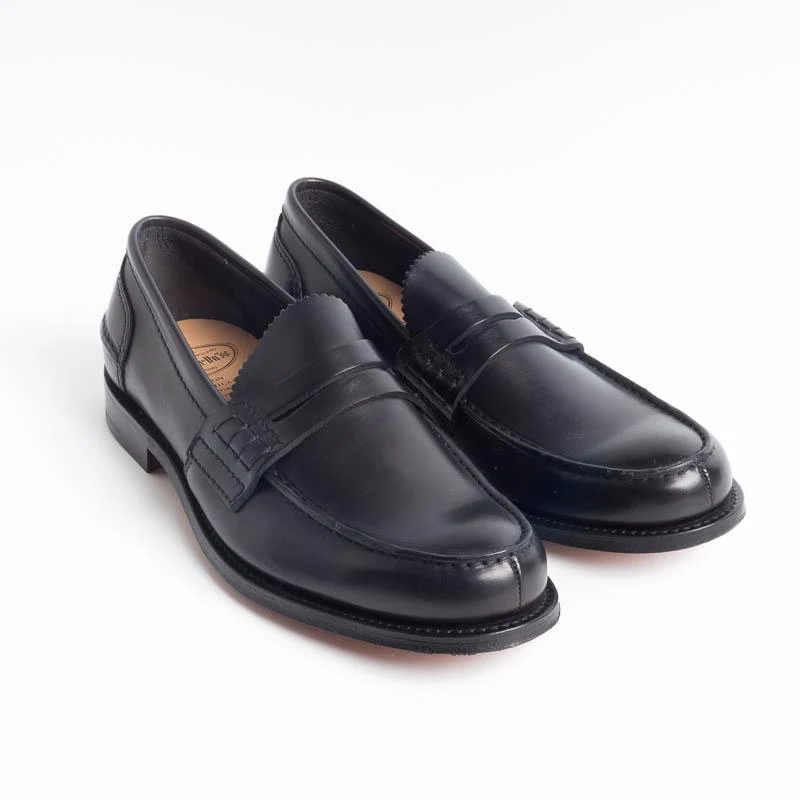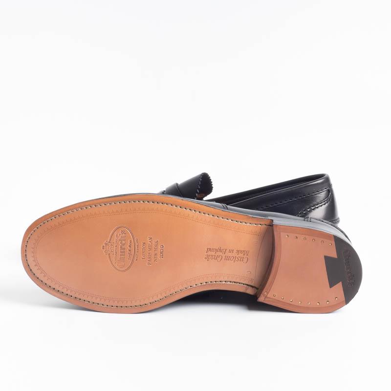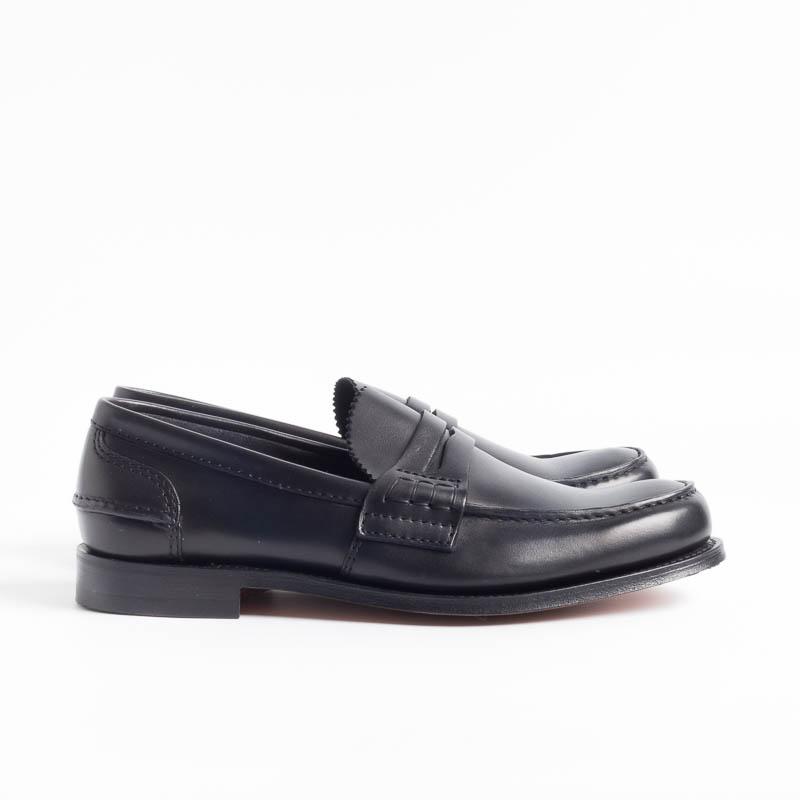 Mocassino Pembrey di Church’s realizzato in pelle di vitello di colore nero. La costruzione della scarpa è Goodyear, interno sfoderato e sottopiede in pelle, la suola è tripla ed è in cuoio.