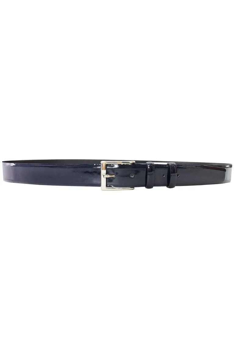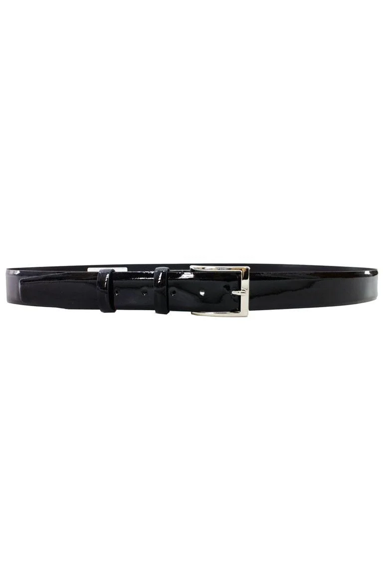 Cintura uomo in pelle lucida tinta unita regolabile modello con fibbia grigia da smoking.