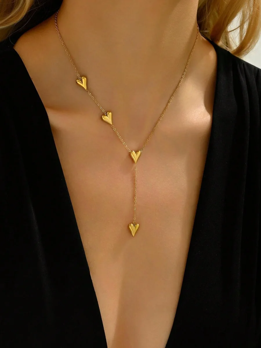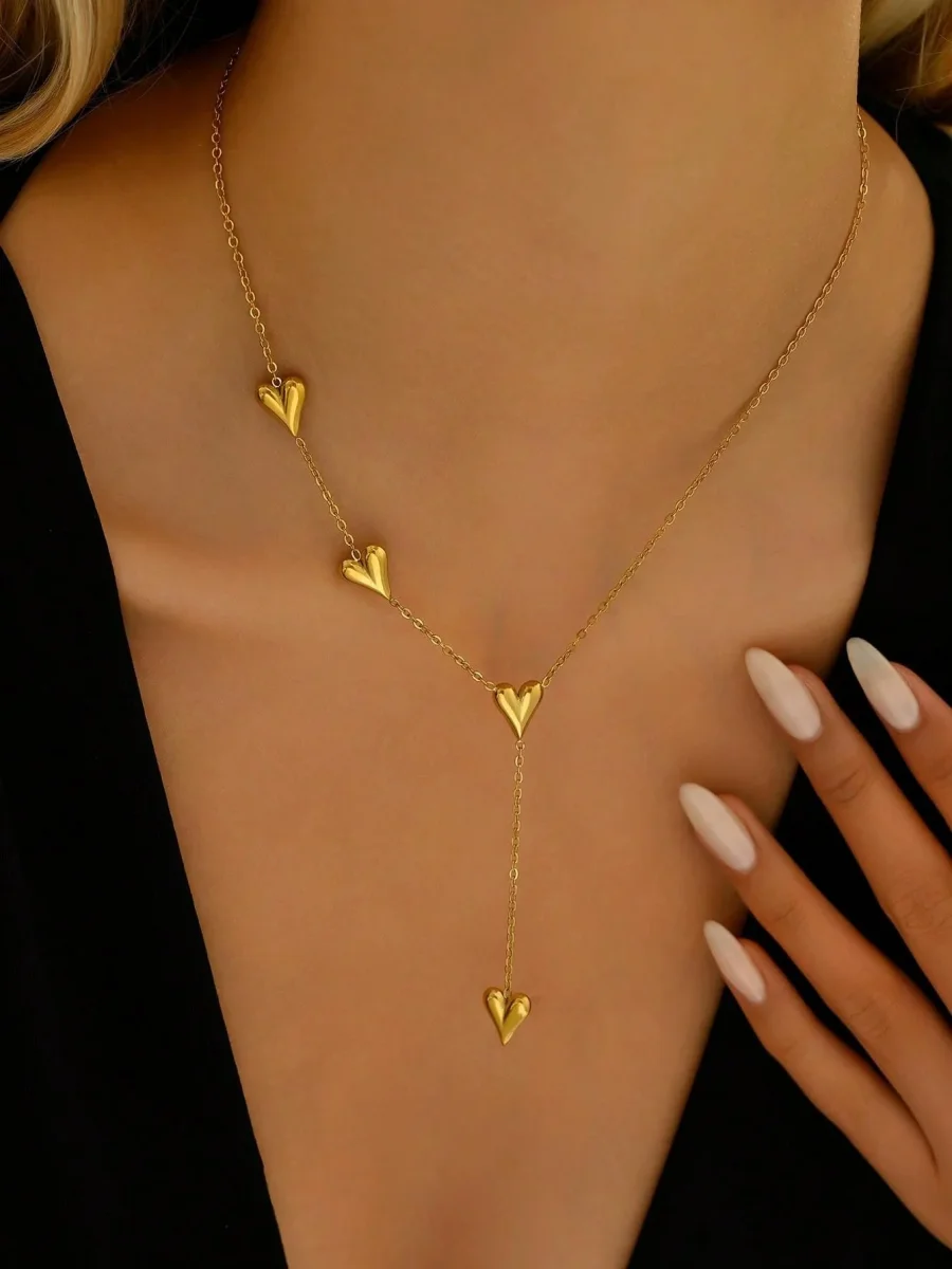 Collana In Acciaio Inossidabile Placcata Oro 4 cuoricini