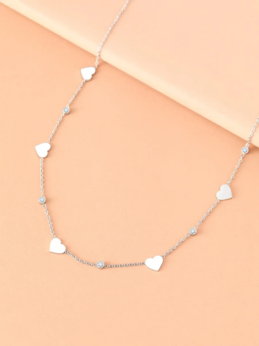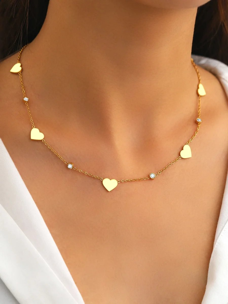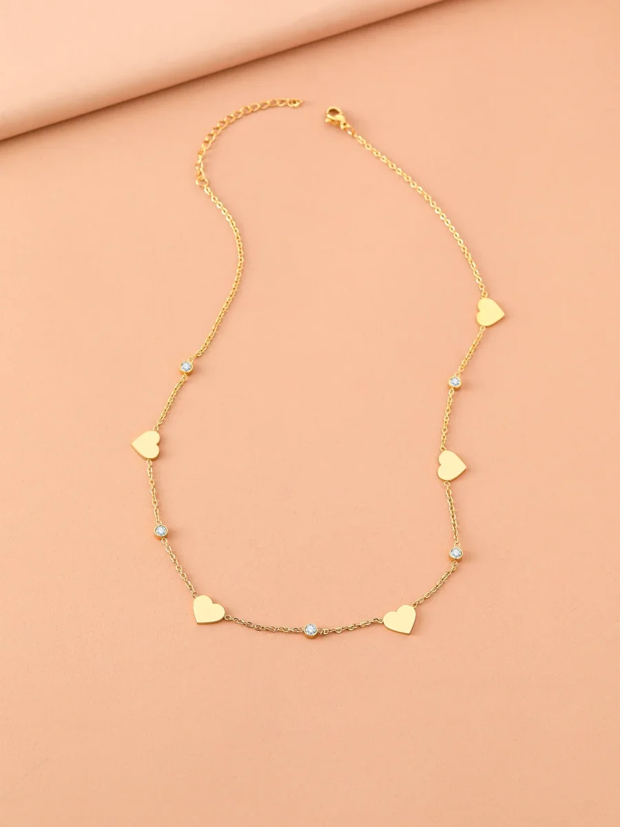 Collierino in acciaio inossidabile cuoricini e zirconi