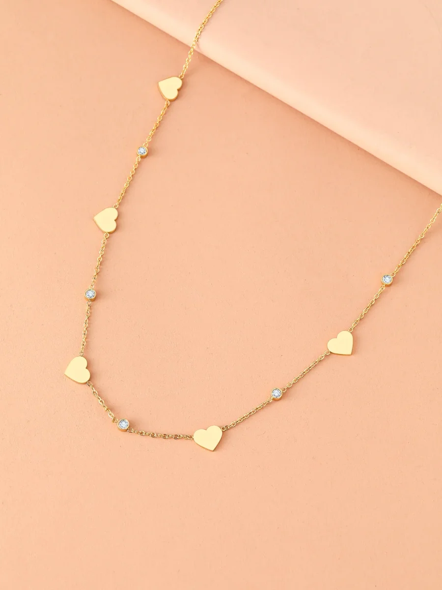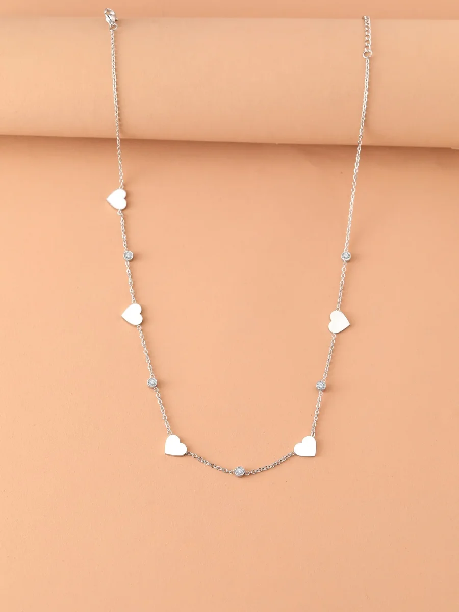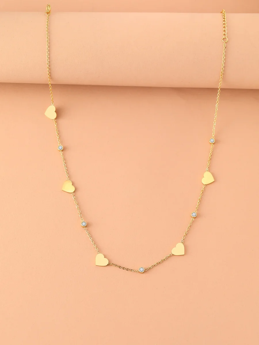 Collierino in acciaio inossidabile cuoricini e zirconi