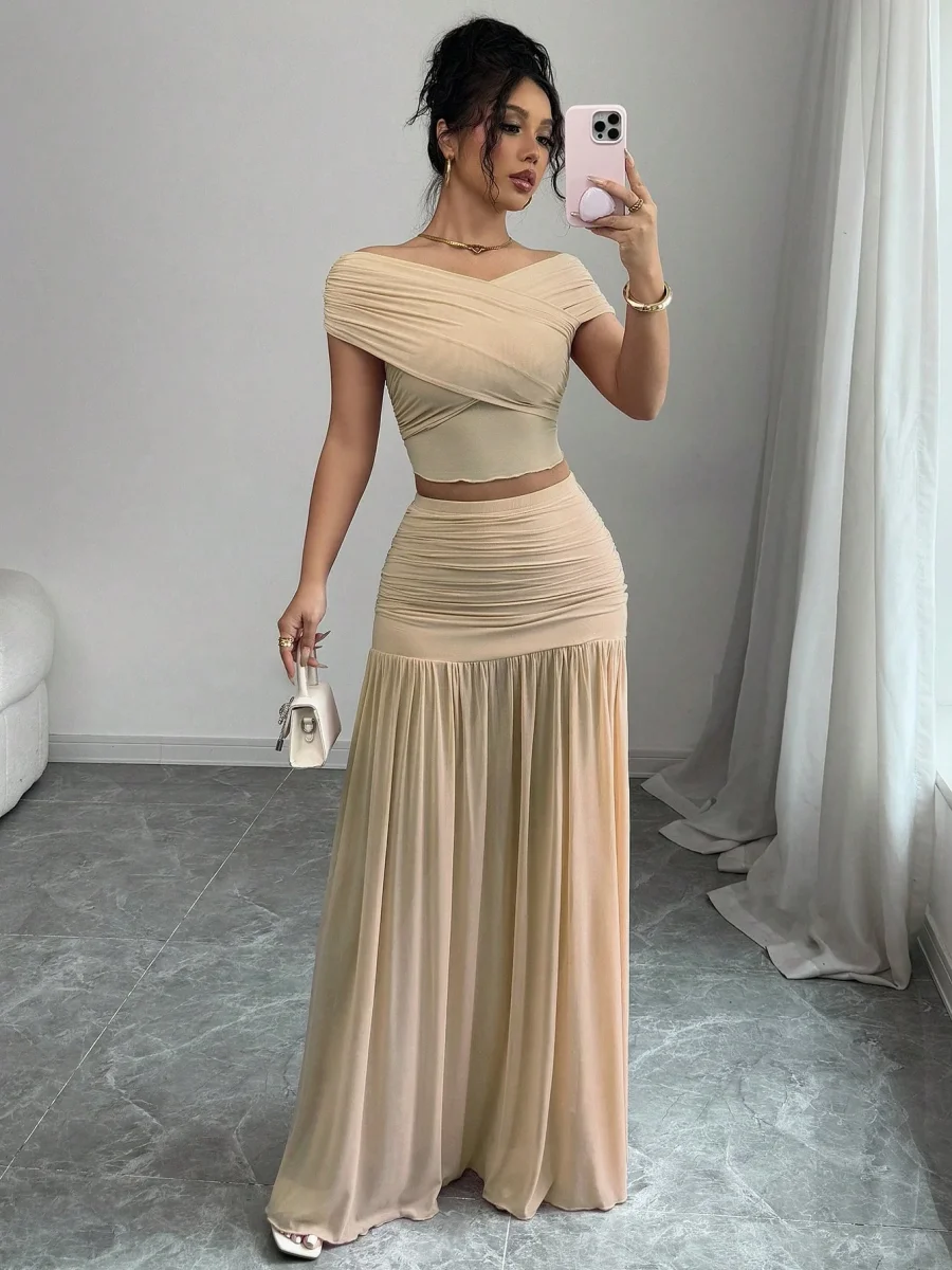 Gonne Fodera : SfoderatoFoderato per un maggiore calore : NonScollatura : Spalle scoperteTipo di motivo : Colore unico, stampa dappertuttoDettaglio : Plissettato, Orlo arricciato, CernieraStile : EleganteTipo di manica : PipistrelloColore : AlbicoccaTipo di top : T-ShirtTipo di bottom : GonneTop Lunghezza manica : Senza manicheGonne Lunghezza : MaxiTop Lunghezza : CortoGonne&Top Composizione : 5% Elastane,95% PoliestereTipo di montaggio : Forma SottileTessuto : Abbastanza ElasticizzatoGonne Tessuto : Tessuto in tulleIstruzioni Lavaggio : Lavaggio in lavatrice o lavaggio a secco professionalesottile : Non
