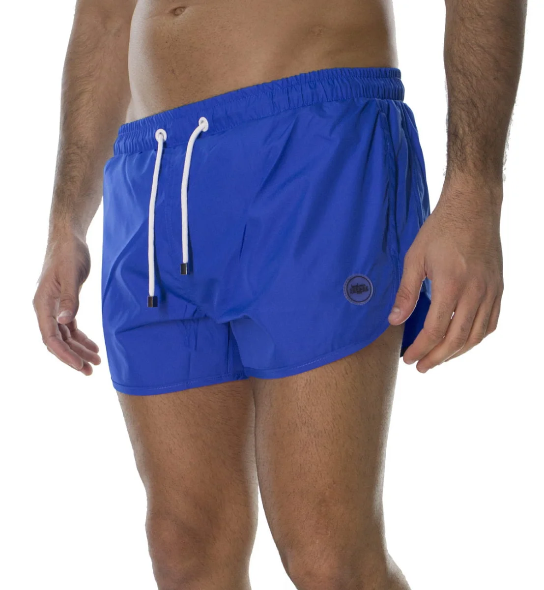Costume da mare uomo modello shorts corto con elastico in vita e laccio logo sul davanto patch tasche a filo