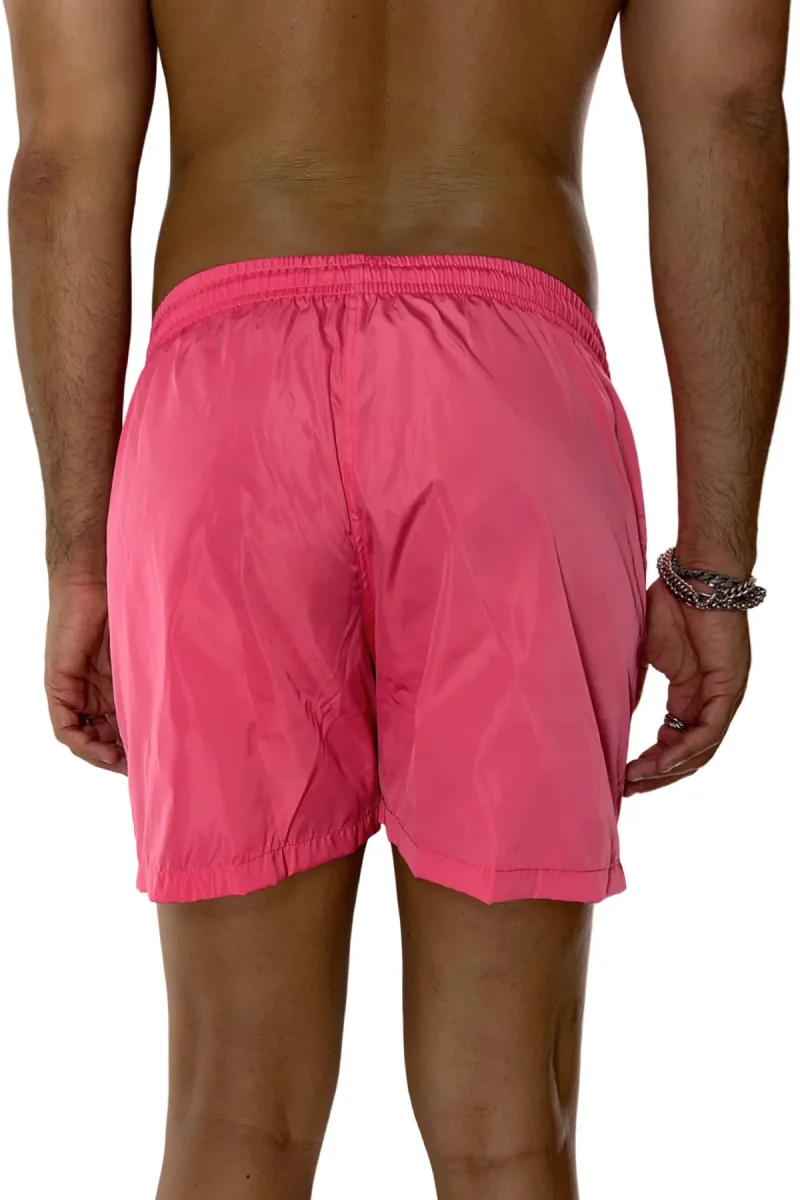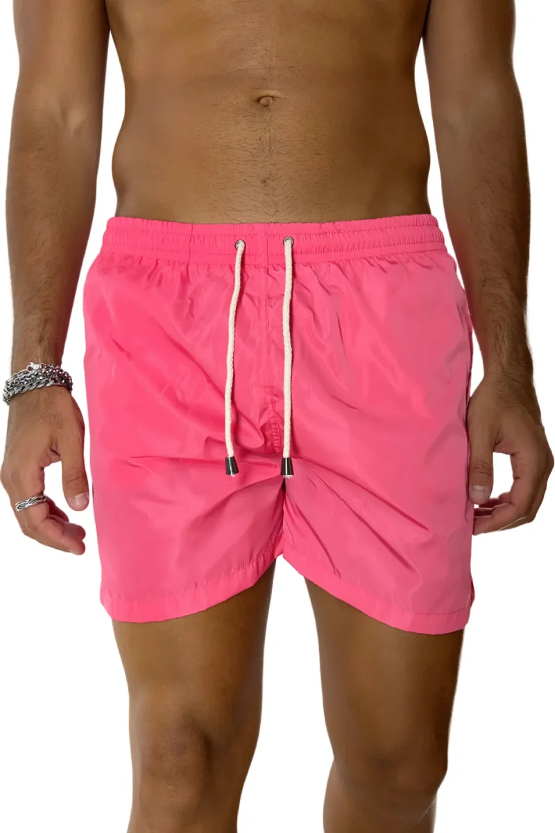 Costume da bagno per uomo con doppia tasca laterale realizzato utilizzando tessuto 100% poliestere di alta qualità ottenuto da plastica recuperata dall’ambiente.