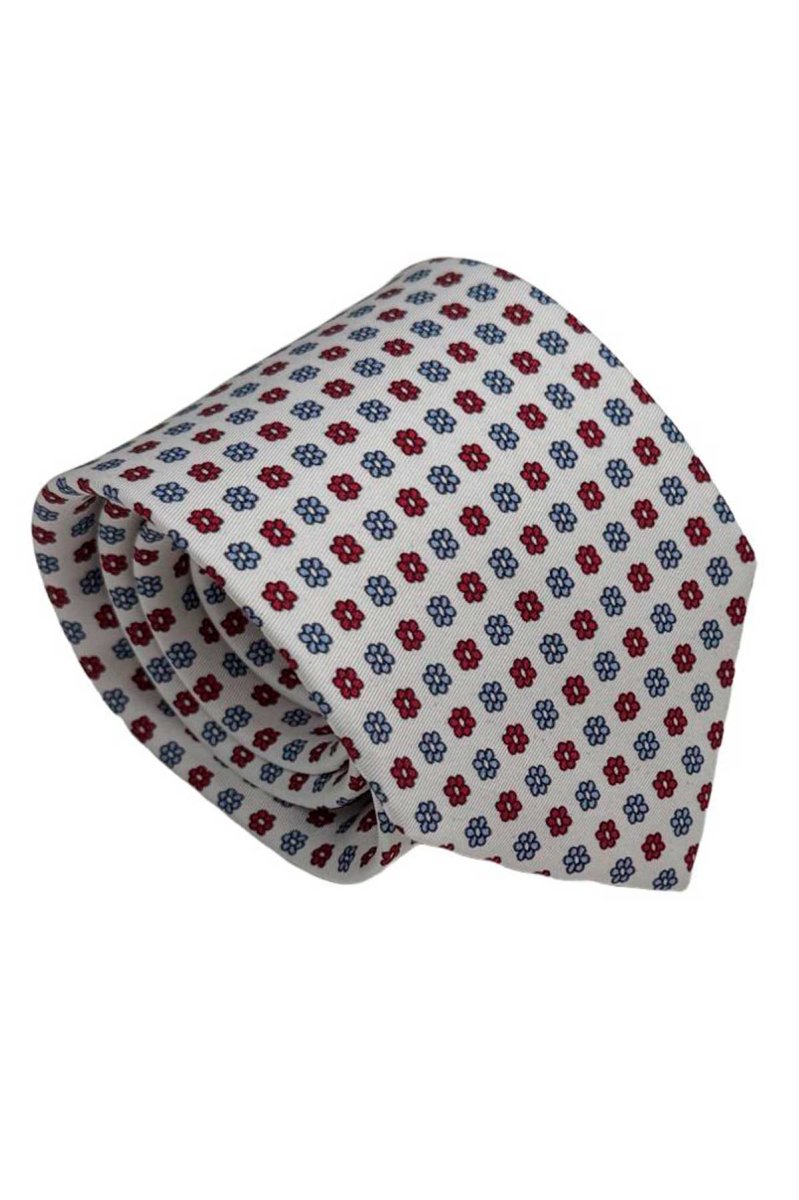 Cravatta uomo Bianca fantasia in pura seta cucita a mano costruzione 3 piege larghezza 9cm