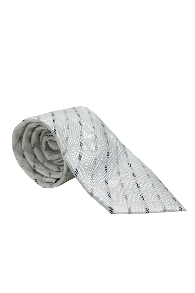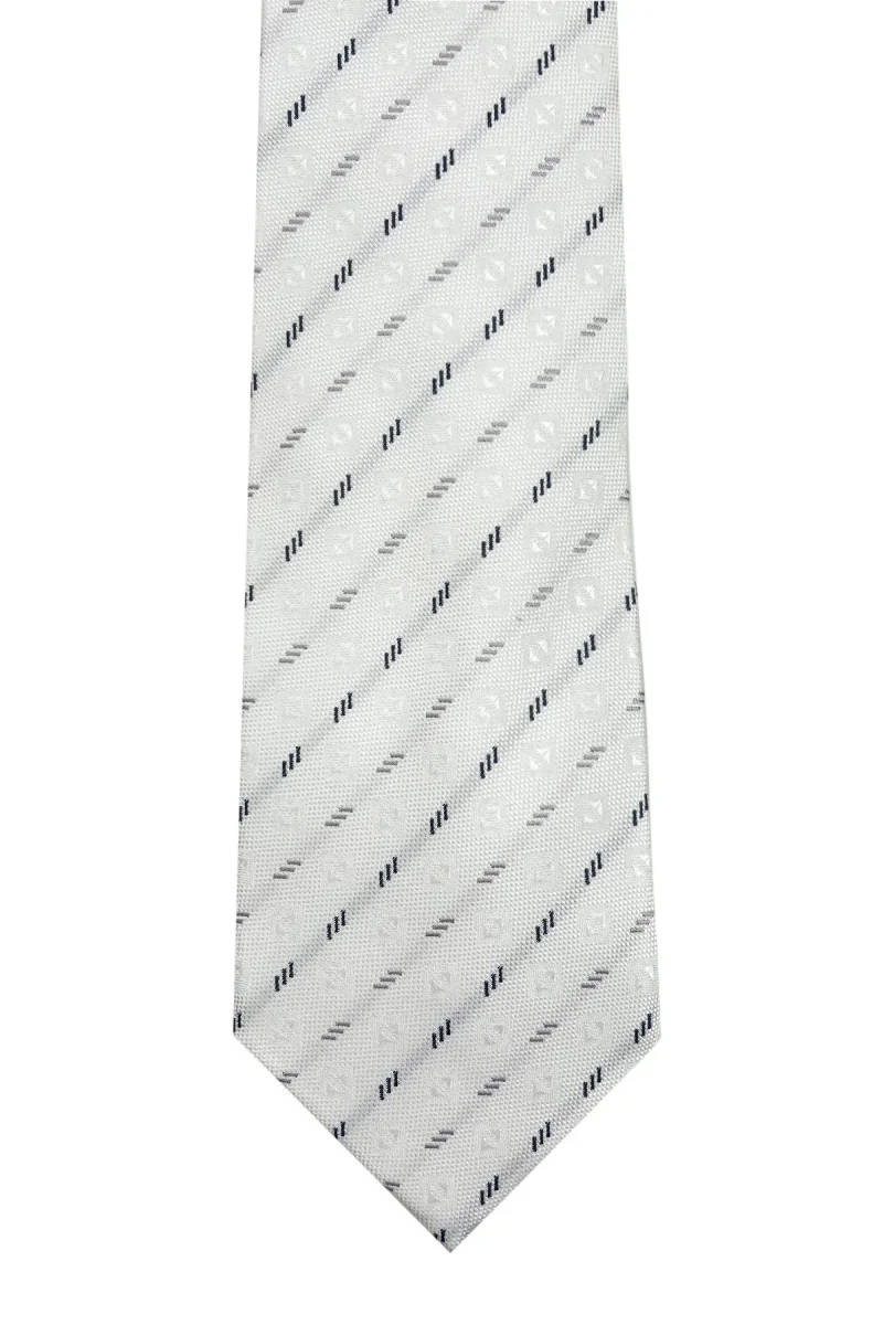 DETTAGLI : Cavatta uomo bianca fantasia linee diagonali 8cm da cerimonia elegante