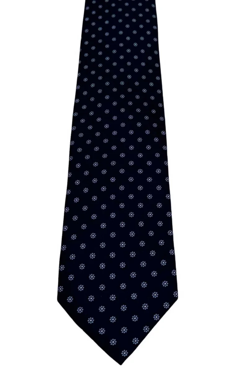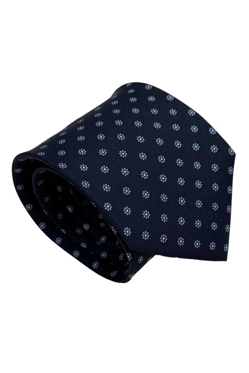 Cravatta uomo Blu fantasia in pura seta cucita a mano costruzione 3 piege larghezza 9cm
