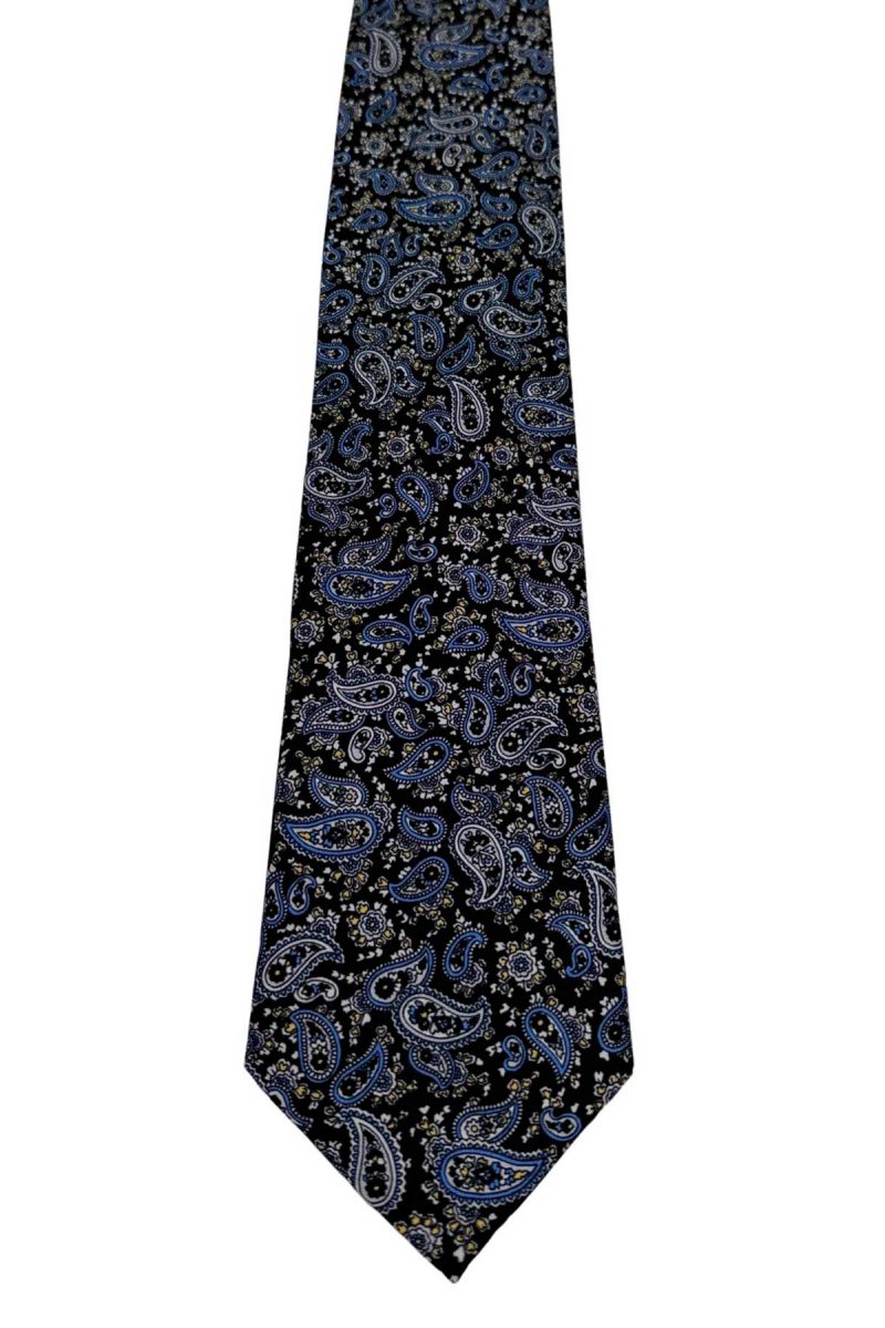 Cravatta uomo nera fantasia in pura seta cucita a mano costruzione 3 piege larghezza 9cm