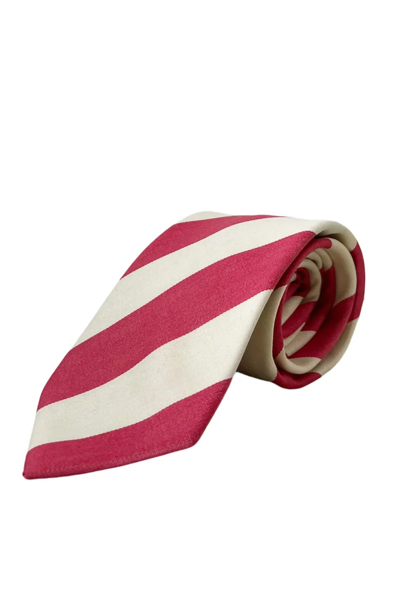 Recensisci per primo “Cravatta uomo rosa fantasia righe 8cm da cerimonia elegante fresco lana super 120’s”