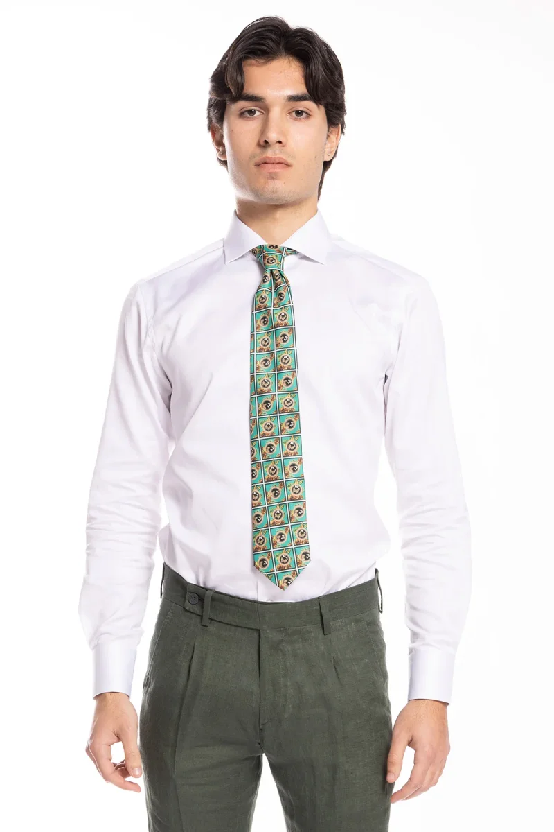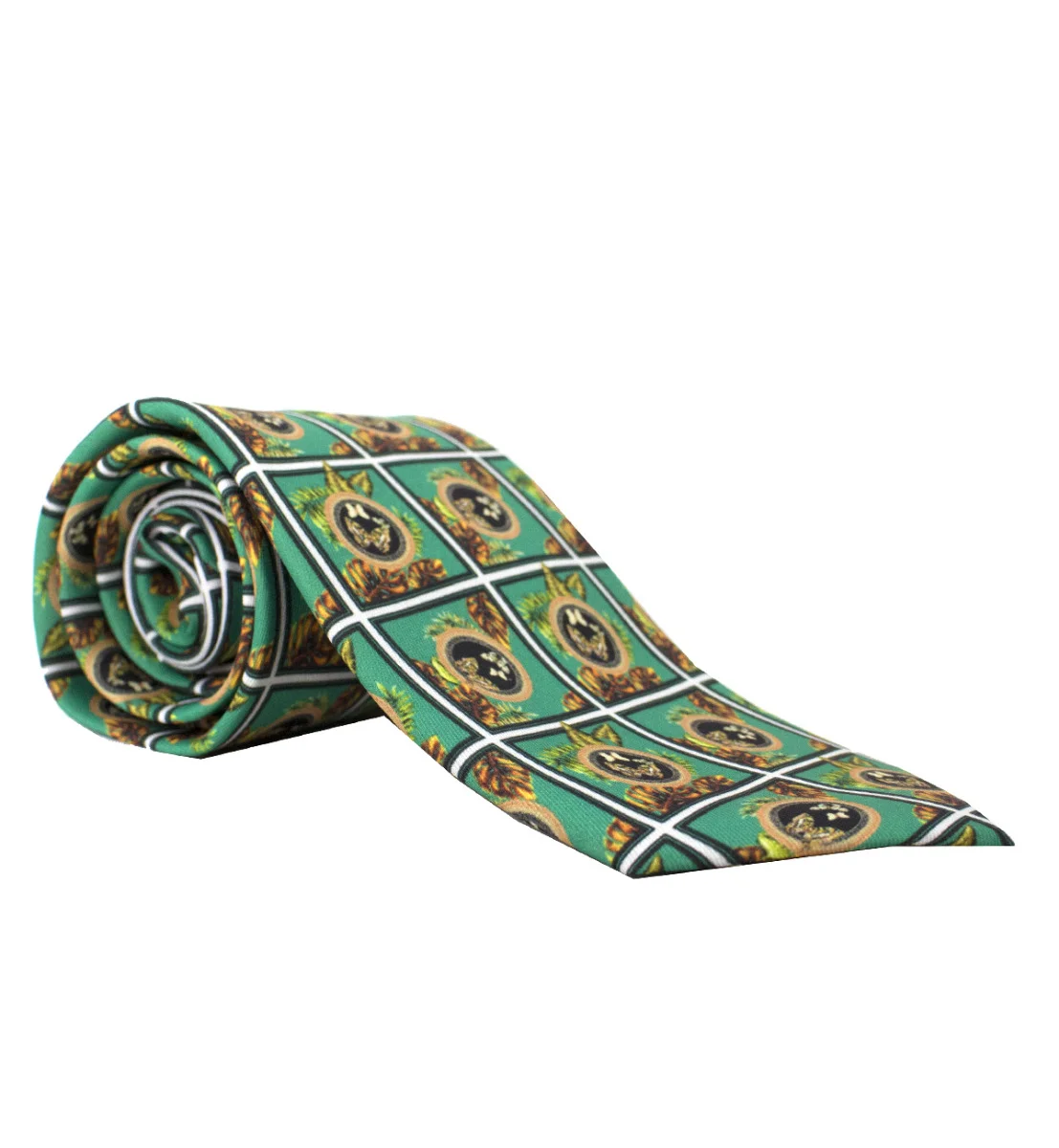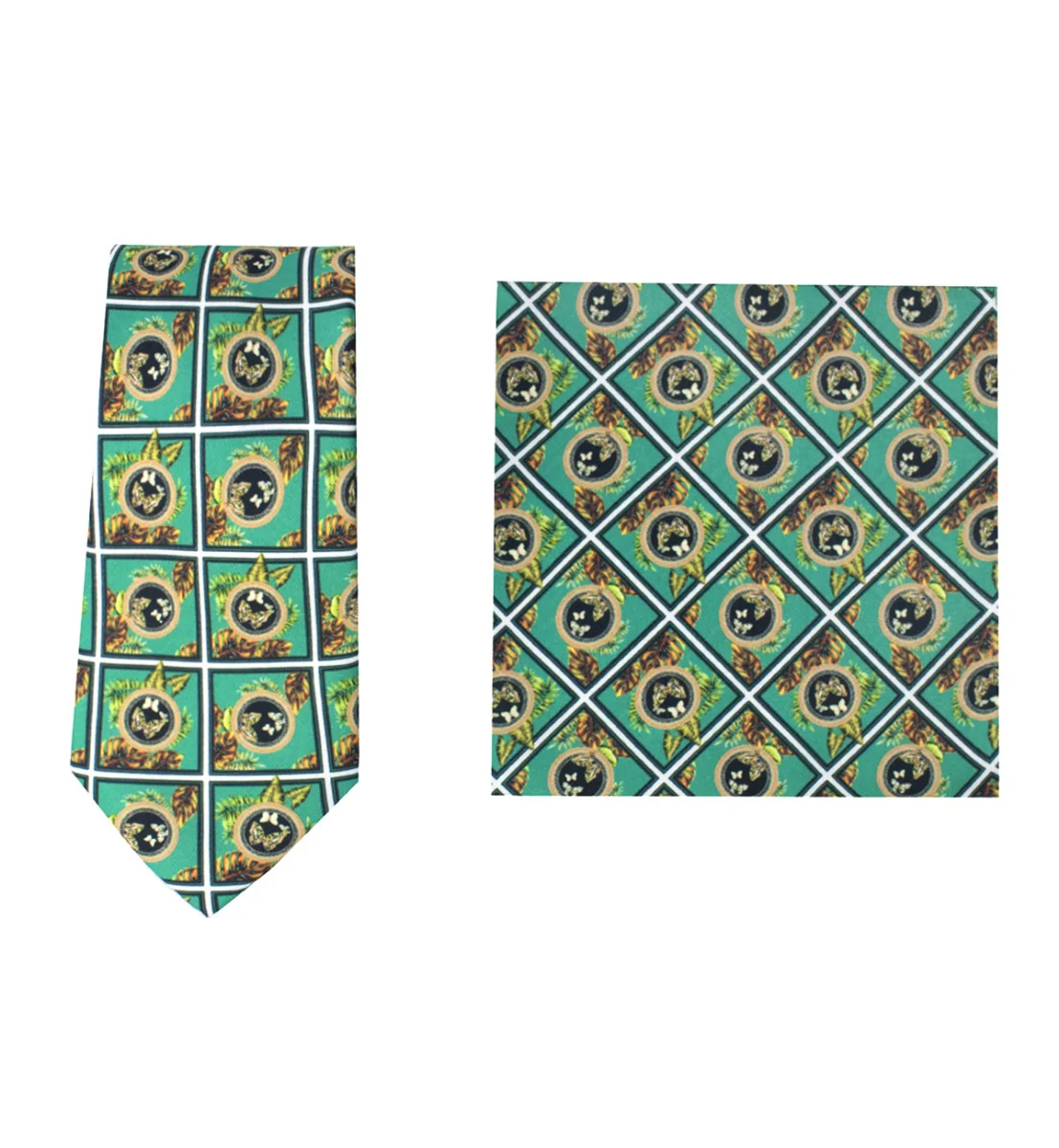 Cravatta uomo verde fantasia simil versace compresa di pochette abbinata