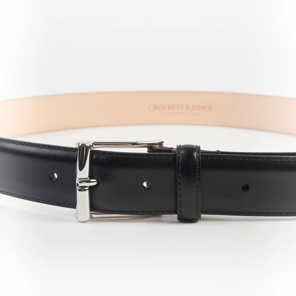 Cintura Crockett & Jones in pelle di colore nero di altezza 3 cm, fibbia in metallo colore argento.
