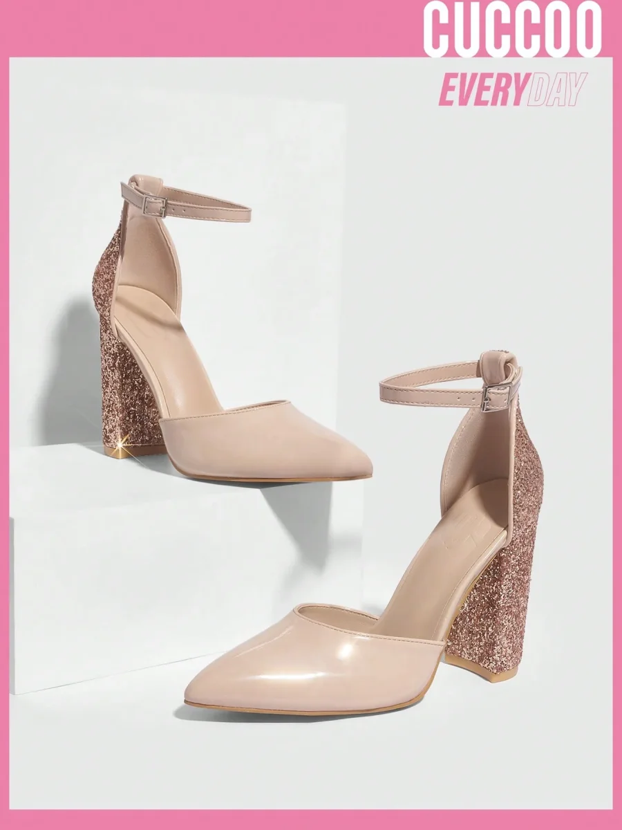 Décolleté A Punta Con Tacco Grosso brillantinato