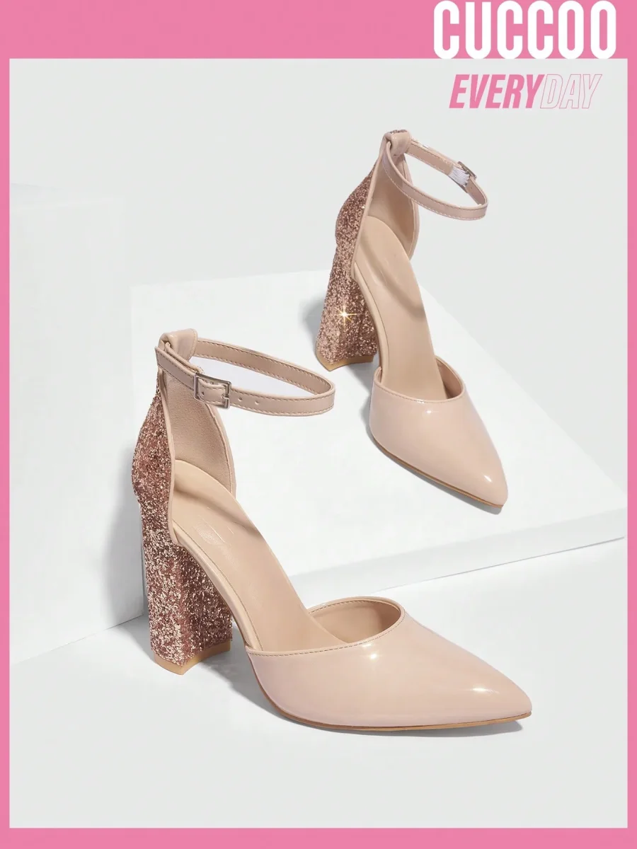 Recensisci per primo “Décolleté A Punta Con Tacco Grosso brillantinato”