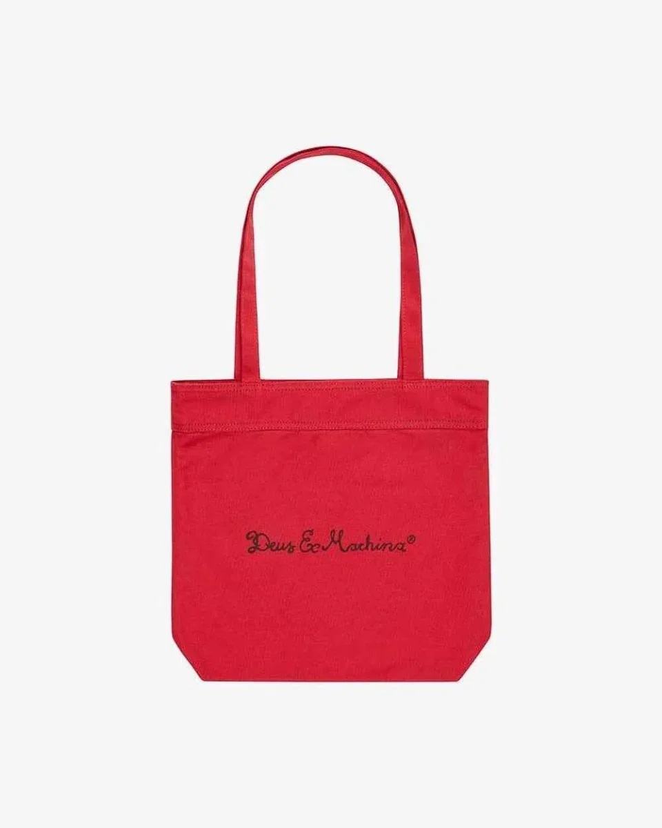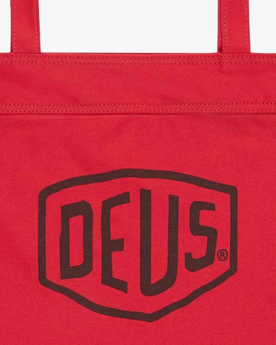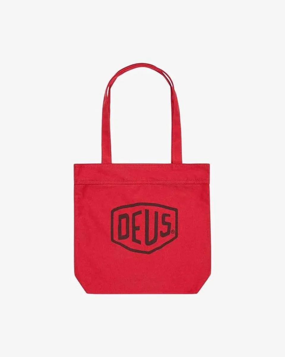 This 100% cotton canvas logo printed tote bag features self fabric shoulder straps and double sided waterbased printed Deus logos.