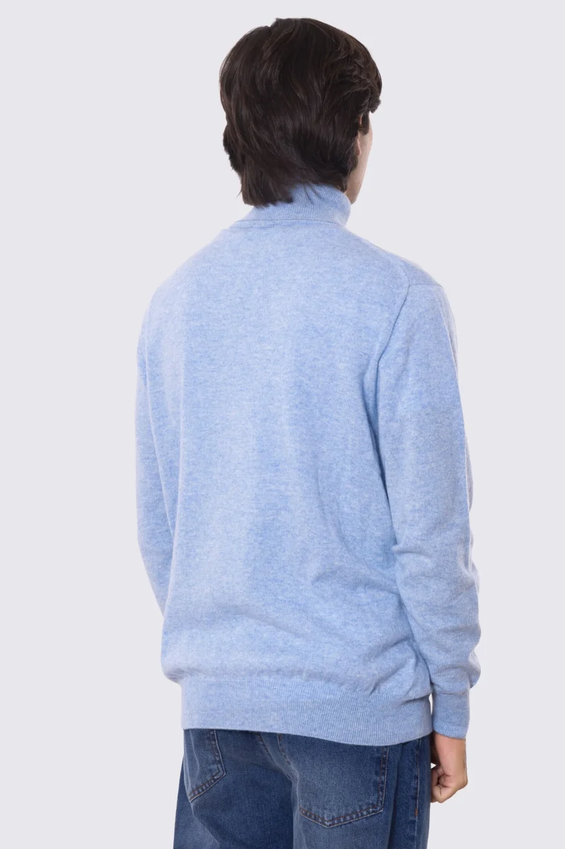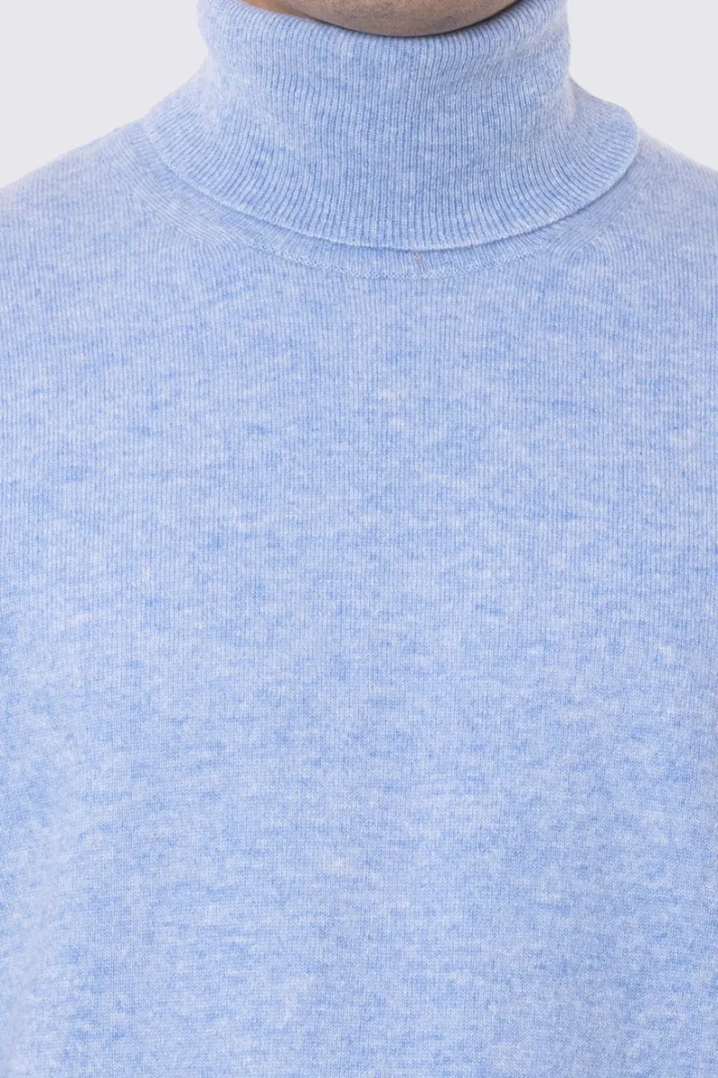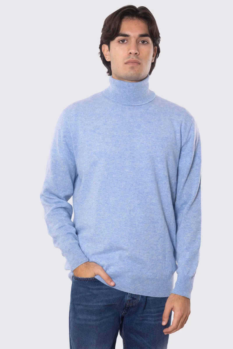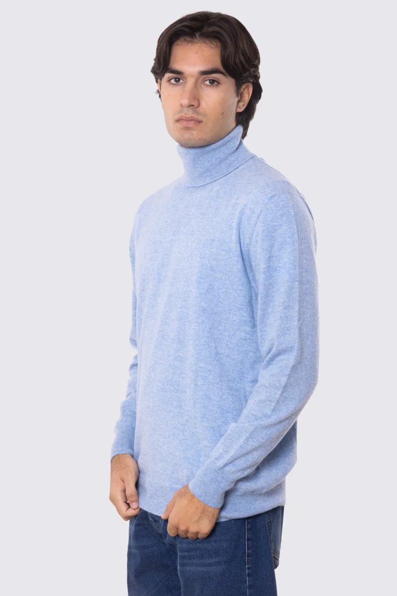 Dolcevita Celeste 100% cashmere a tubolare tinta unita con elastici sulle maniche e sul fondo Finezza 12