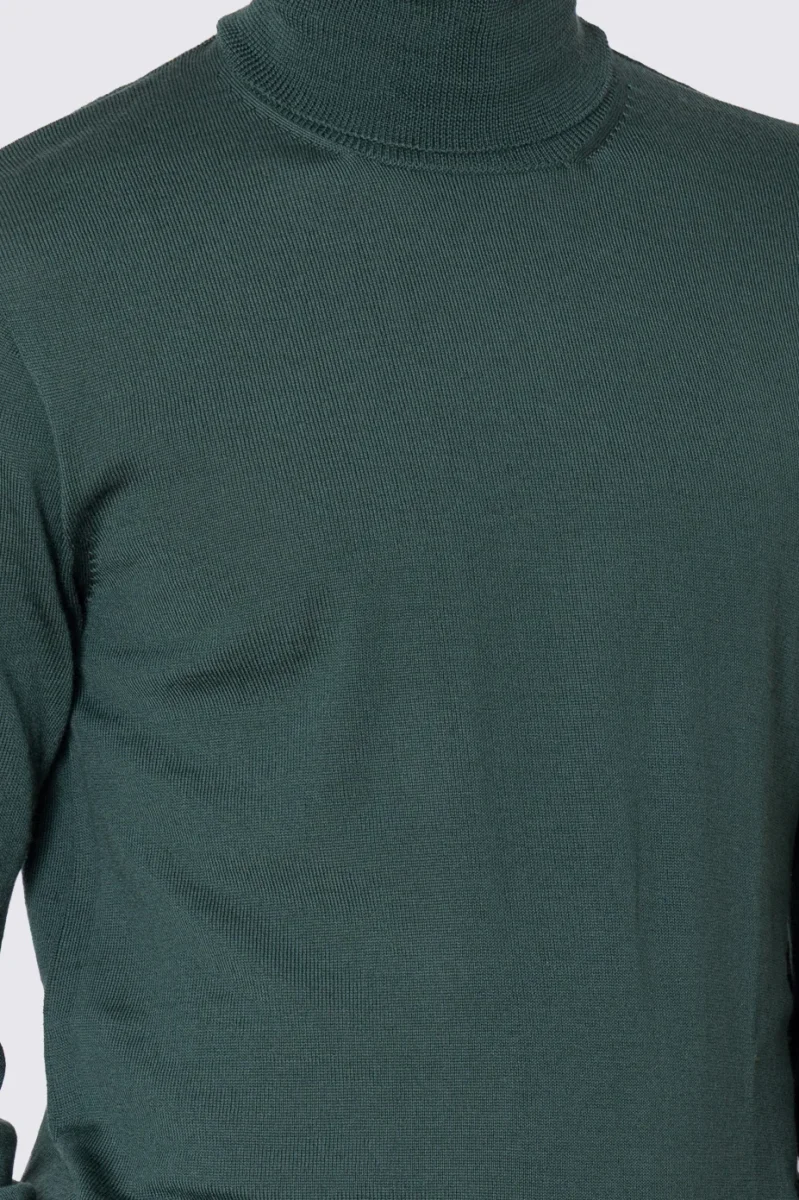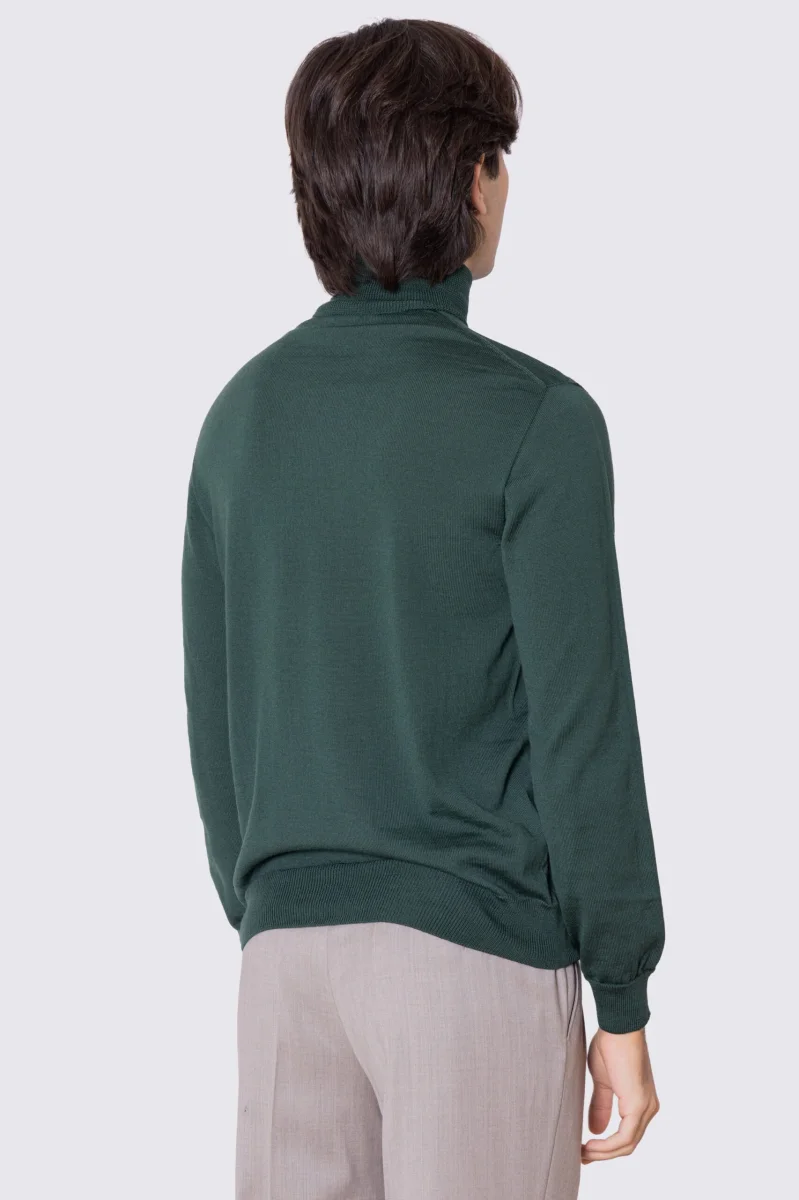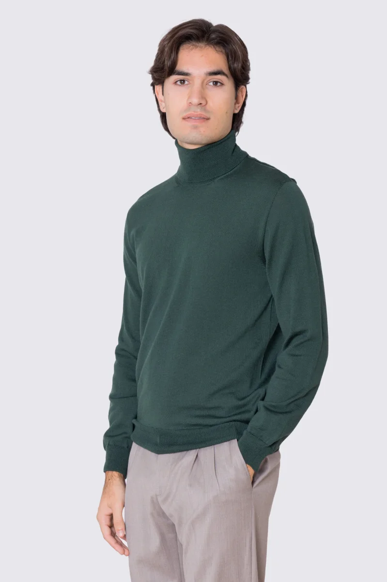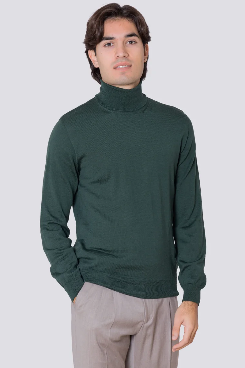 Dolcevita Verde in lana merinos 100% costruzione tubolare senza cuciture rifinito a mano tinta unita con elastici sulle maniche e sul fondo Finezza 12