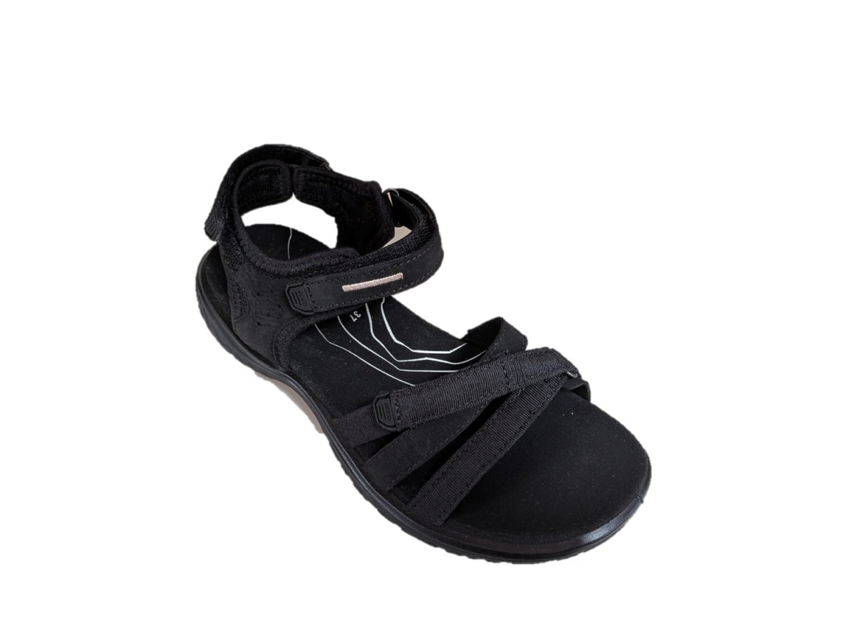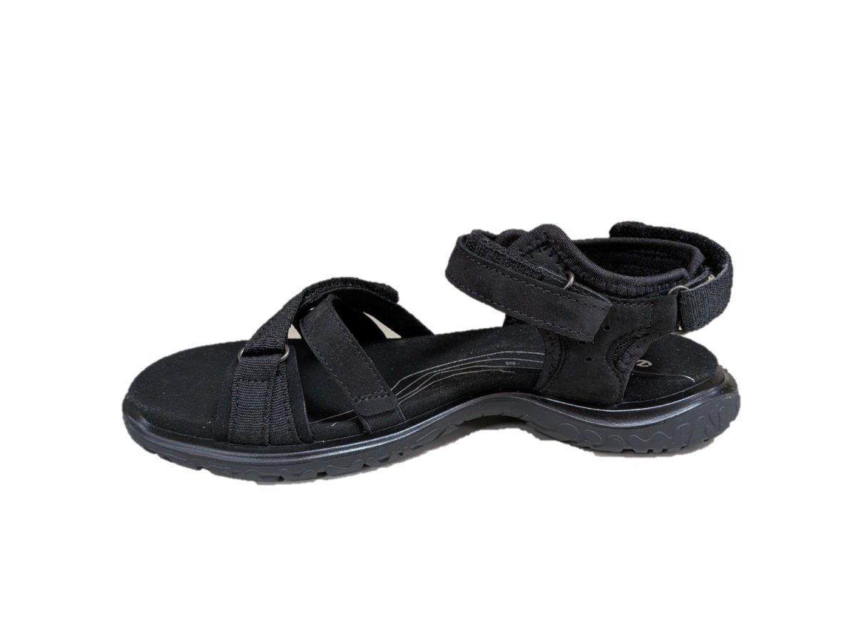 Sandali in pelle scamosciata e tessuto colore nero, suola in gomma