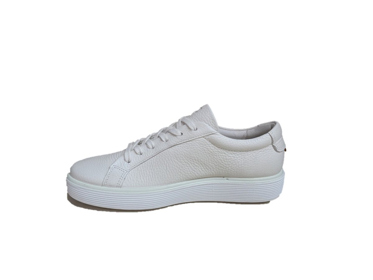 Sneakers in pelle colore bianco, suola in gomma, fodera in pelle, sottopiede estraibile