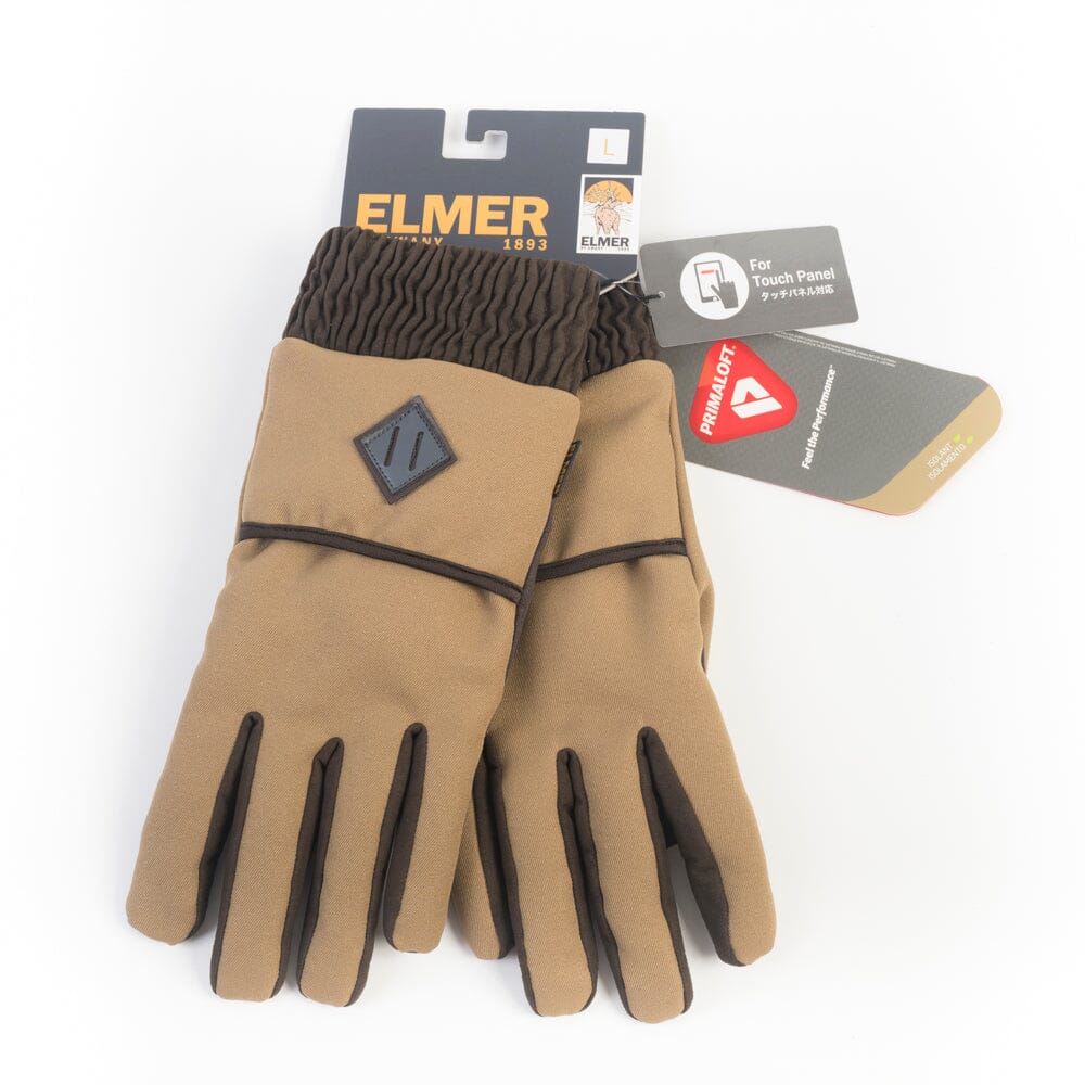 Guanti di colore cammello e marrone di Elmer by Swany, marchio artigianale che nasce in America nel 1893 e si sviluppa poi in Giappone.