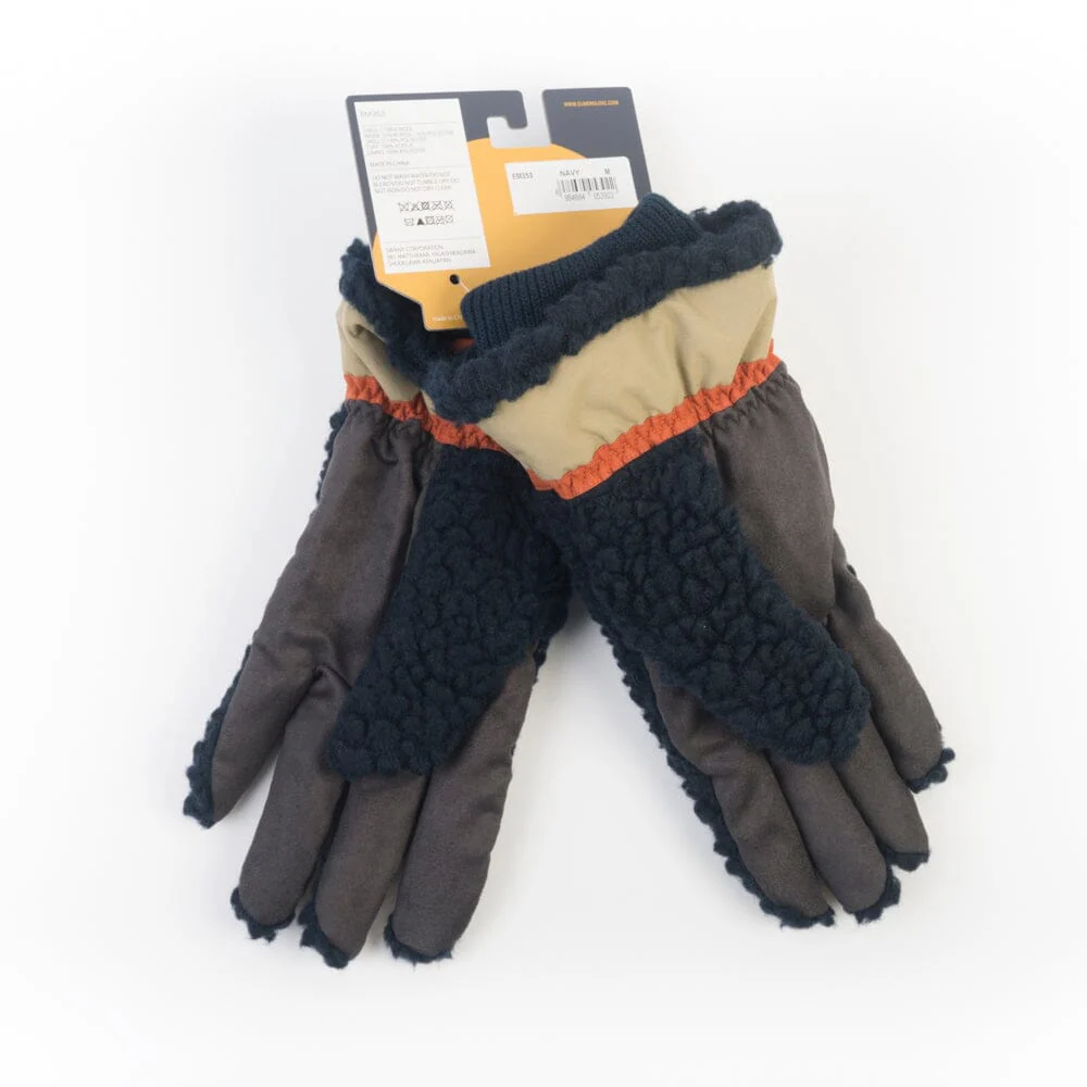 Guanti teddy di colore blu di Elmer by Swany, marchio artigianale che nasce in America nel 1893 e si sviluppa poi in Giappone.