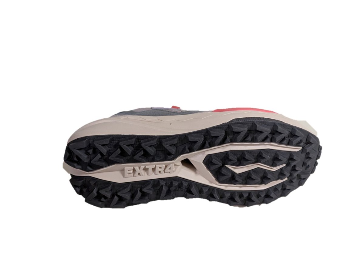 – Suola a 5 componenti: Tasselli a ‘V’ da 4mm per una trazione superiore, intesuola ultraleggera in EVA, cuscinetti ammortizzanti su tallone e avanpiede, inserto centrale in TPU per maggiore stabilità dinamica e supporto.